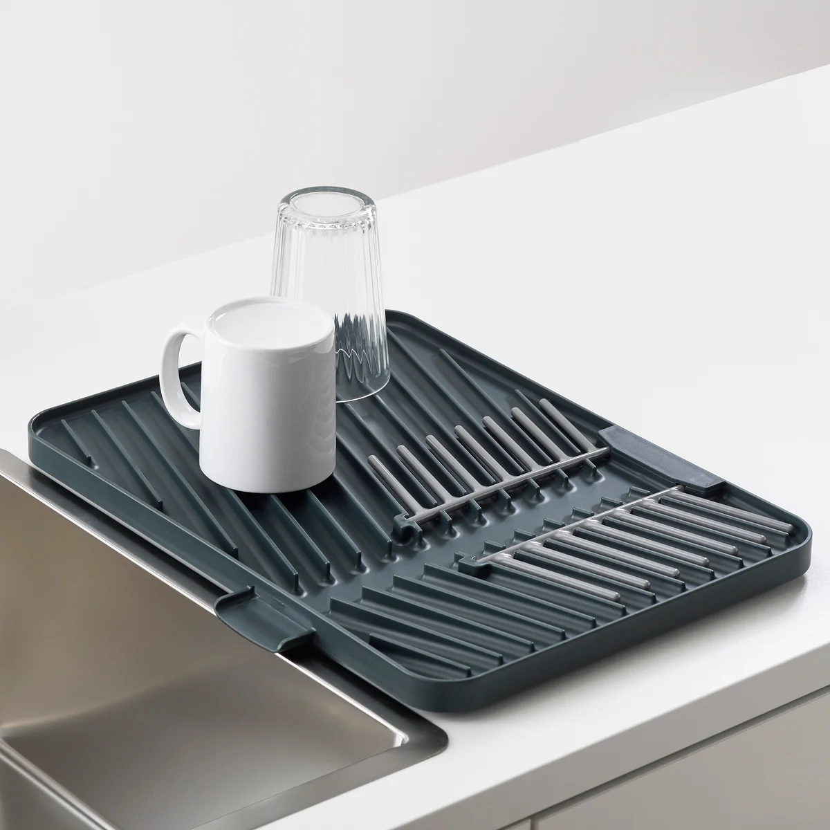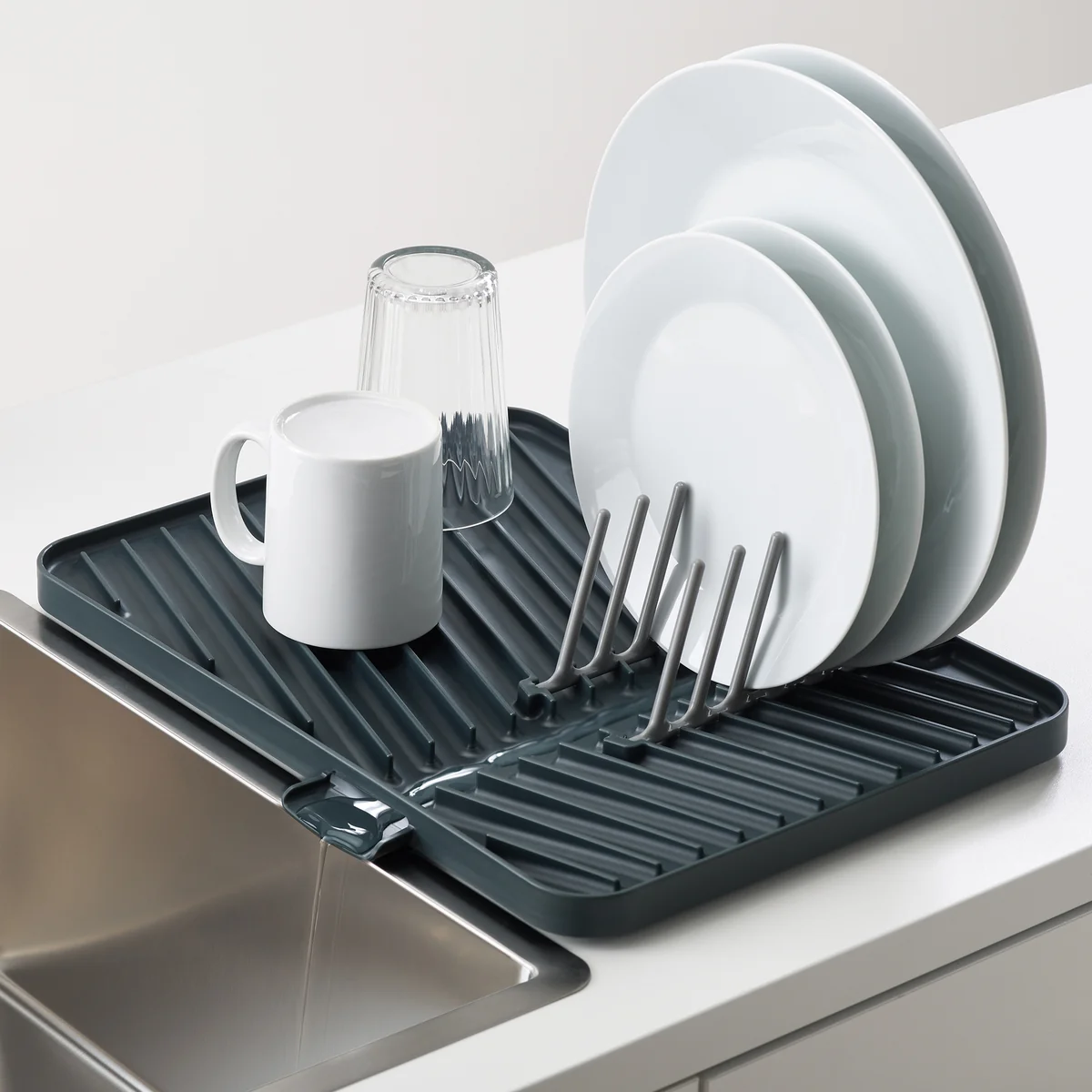 Flip-Up de Joseph Joseph Joseph est un égouttoir pratique et pliable pour sécher 6 assiettes ainsi qu'une variété de tasses, verres et bols. Après utilisation, il peut être facilement replié et rangé de façon compacte.