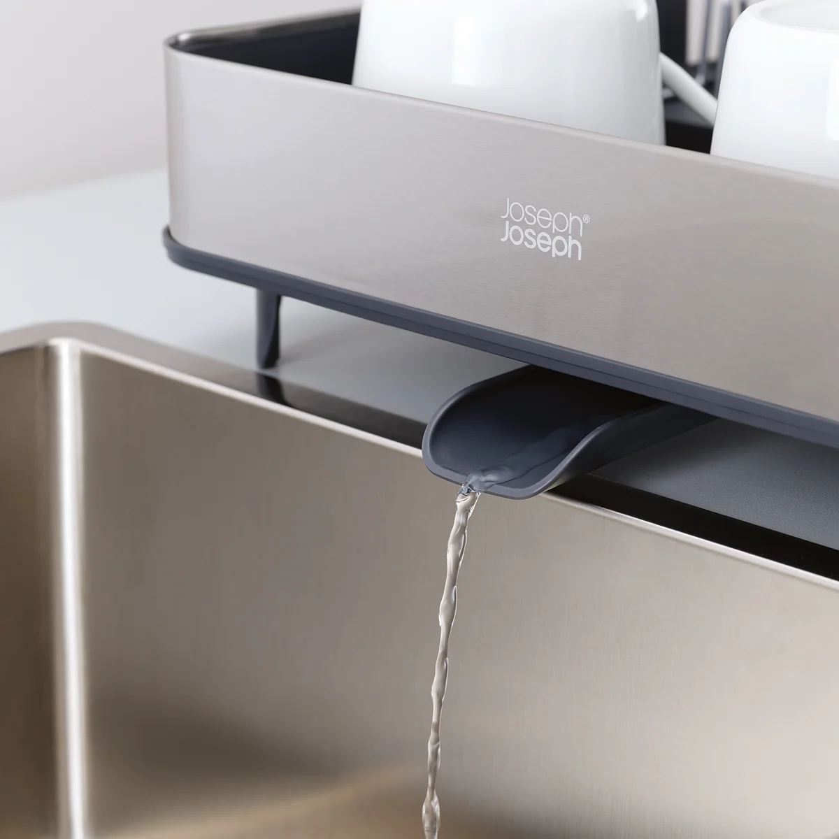 Le set Rethink your Sink set de Joseph Joseph est la réponse aux besoins de toute cuisine en quête d'efficacité et de fonctionnalité. Le support de vaisselle de ce set est extrêmement flexible et peut être rallongé si nécessaire pour accueillir davantage de pièces de vaisselle. Avec un bec intégré, un rail pour planche à découper, des nervures surélevées qui empêchent l'eau de stagner et un récipient amovible pour les couverts, il rend le travail en cuisine tellement plus facile. Le distributeur de savon correspondant séduit par sa tête généreuse et facile à presser pour une hygiène optimale et par sa fenêtre de remplissage pratique. Sa base antidérapante lui permet de rester en place. Avec une capacité allant jusqu'à 350 ml de savon liquide, ce distributeur de savon est le partenaire idéal dans votre cuisine. Le Rethink your Sink Set de Joseph Joseph est un exemple parfait de solutions innovantes qui facilitent le quotidien dans la cuisine tout en étant élégantes et bien pensées.
