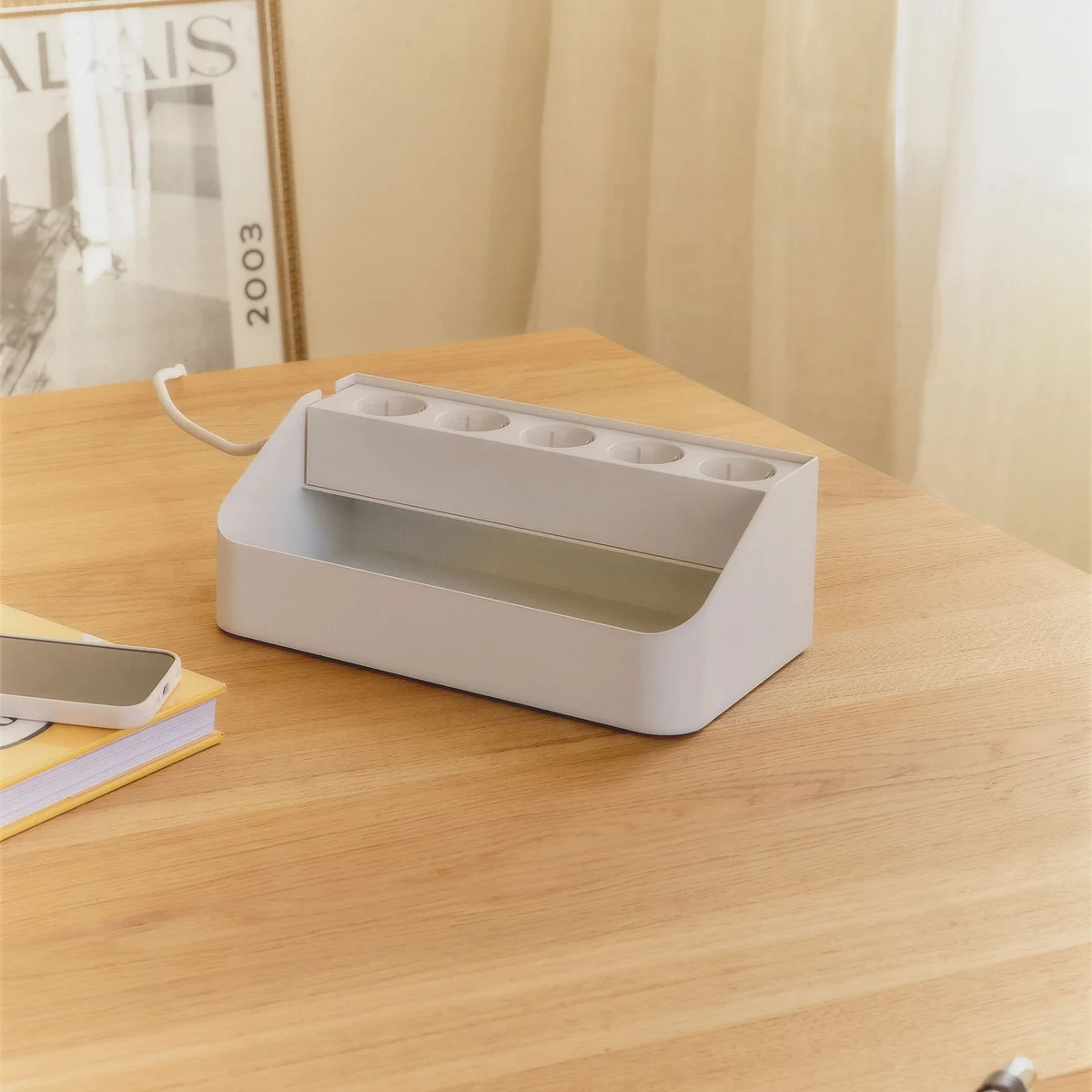 Le Power Tray , conçu pour Pedestal par le studio de design BIG-GAME, est le complément intelligent pour tous ceux qui souhaitent combiner avec style leur alimentation électrique et leur organisation de travail. Spécialement conçu pour être combiné avec le Power Beam de Pedestal , cet organiseur en acier robuste offre plusieurs compartiments séparés pour les câbles, les blocs d'alimentation, les adaptateurs et autres petits outils qui, autrement, pourraient créer le chaos.