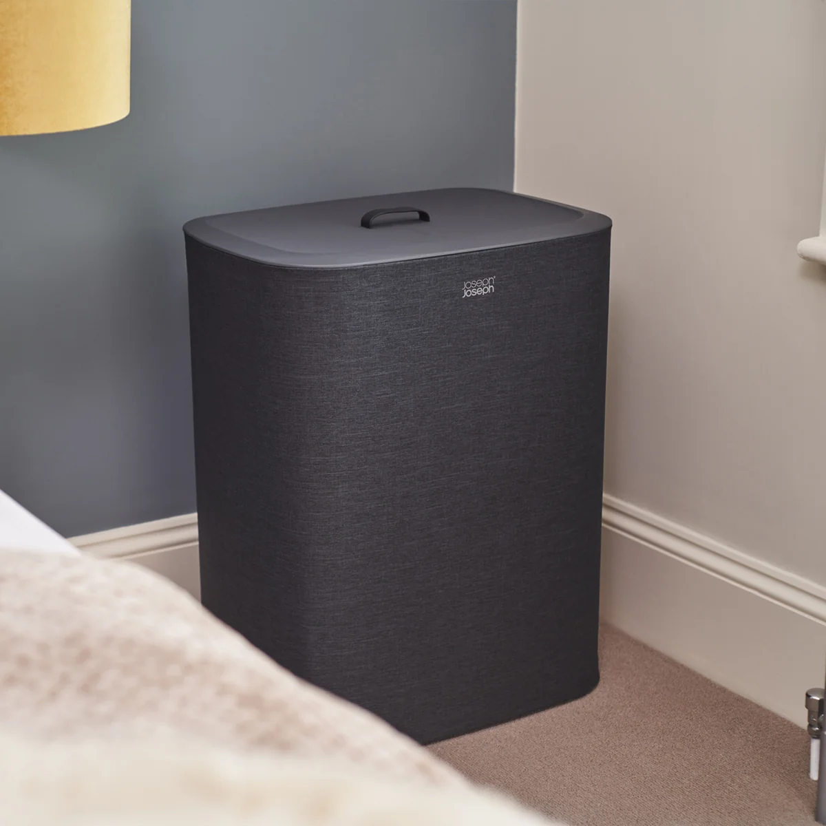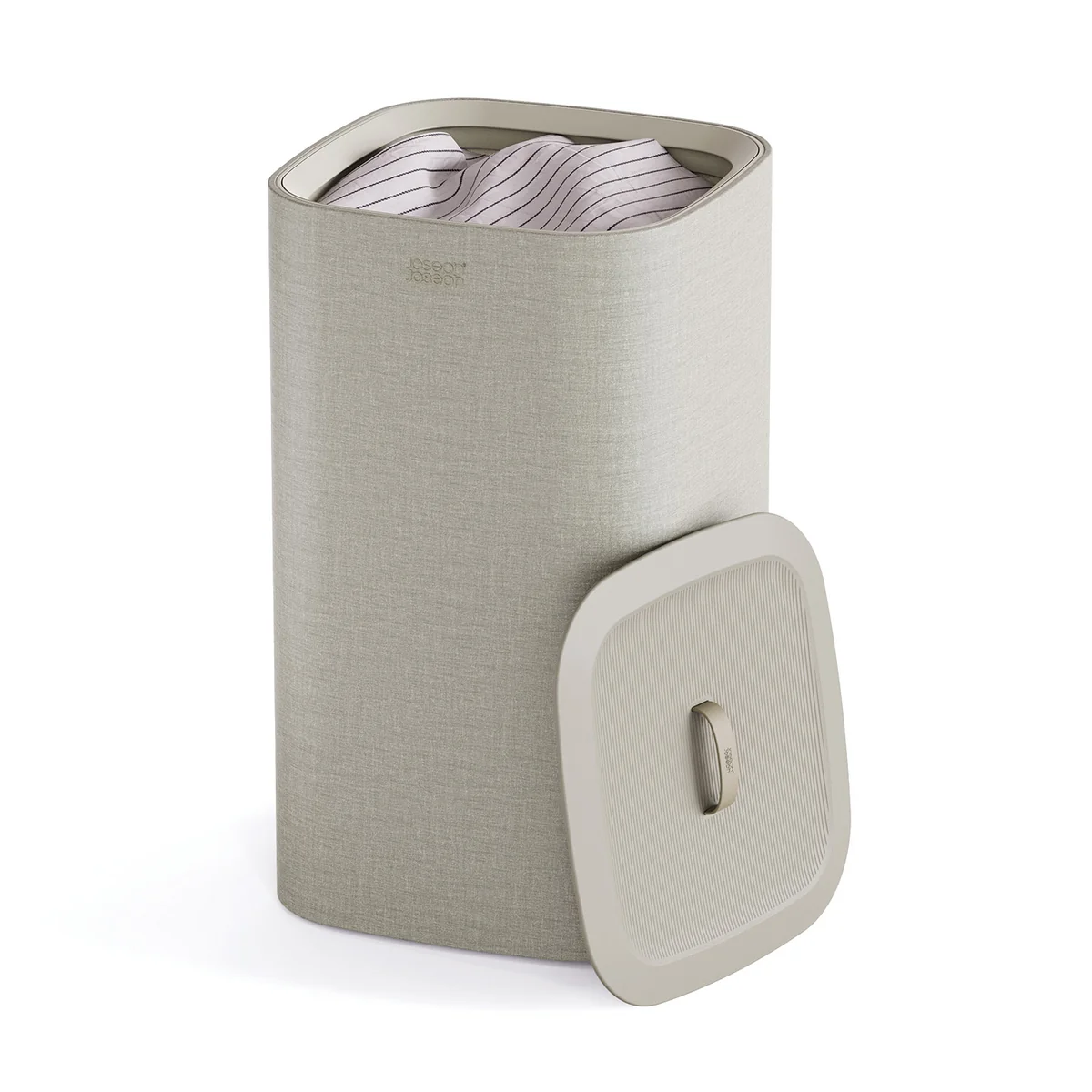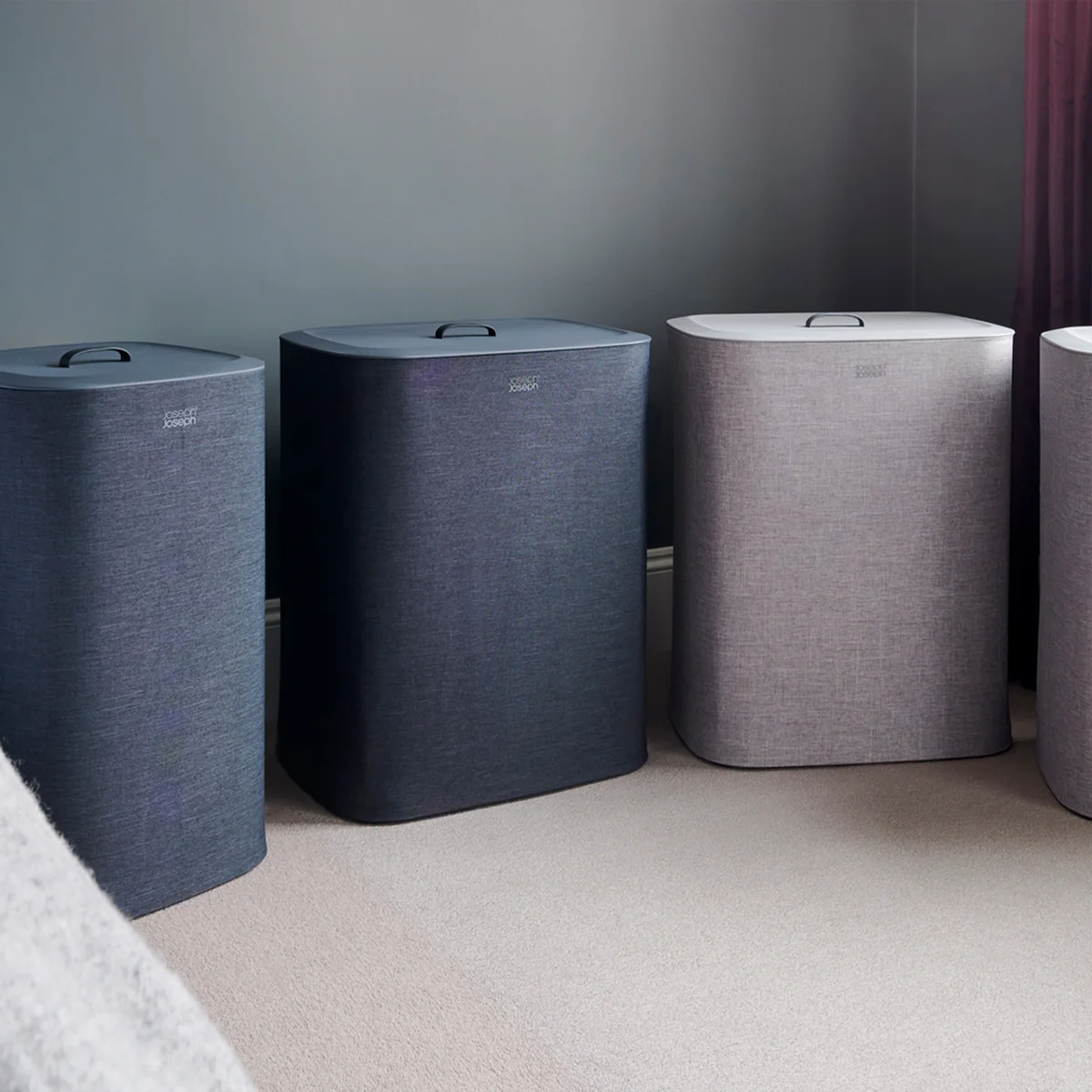 Le panier à linge Tota de Joseph Joseph dispose d'une multitude de fonctions pratiques qui facilitent le travail le jour de la lessive : Le bac contient deux sacs en tissu qui permettent de séparer le linge en couleurs claires et foncées.