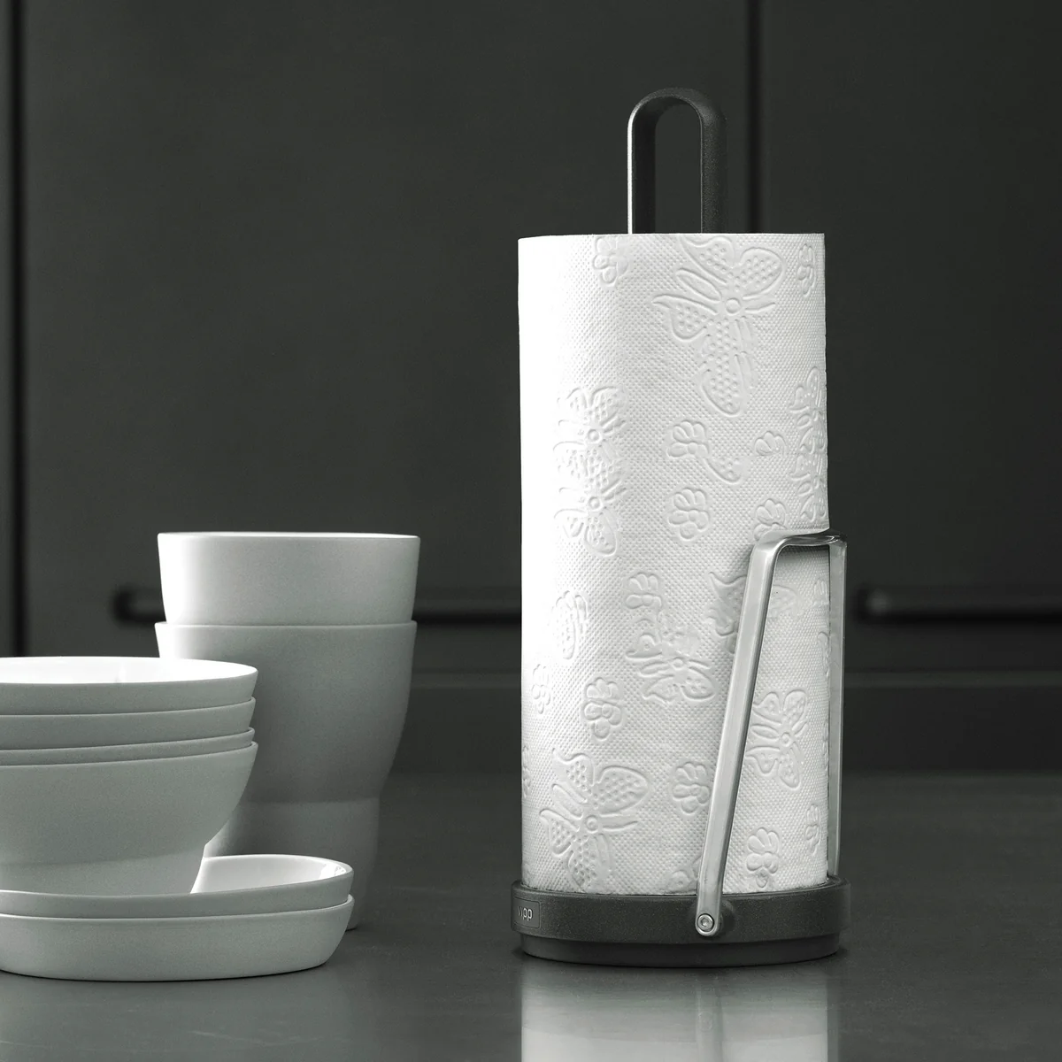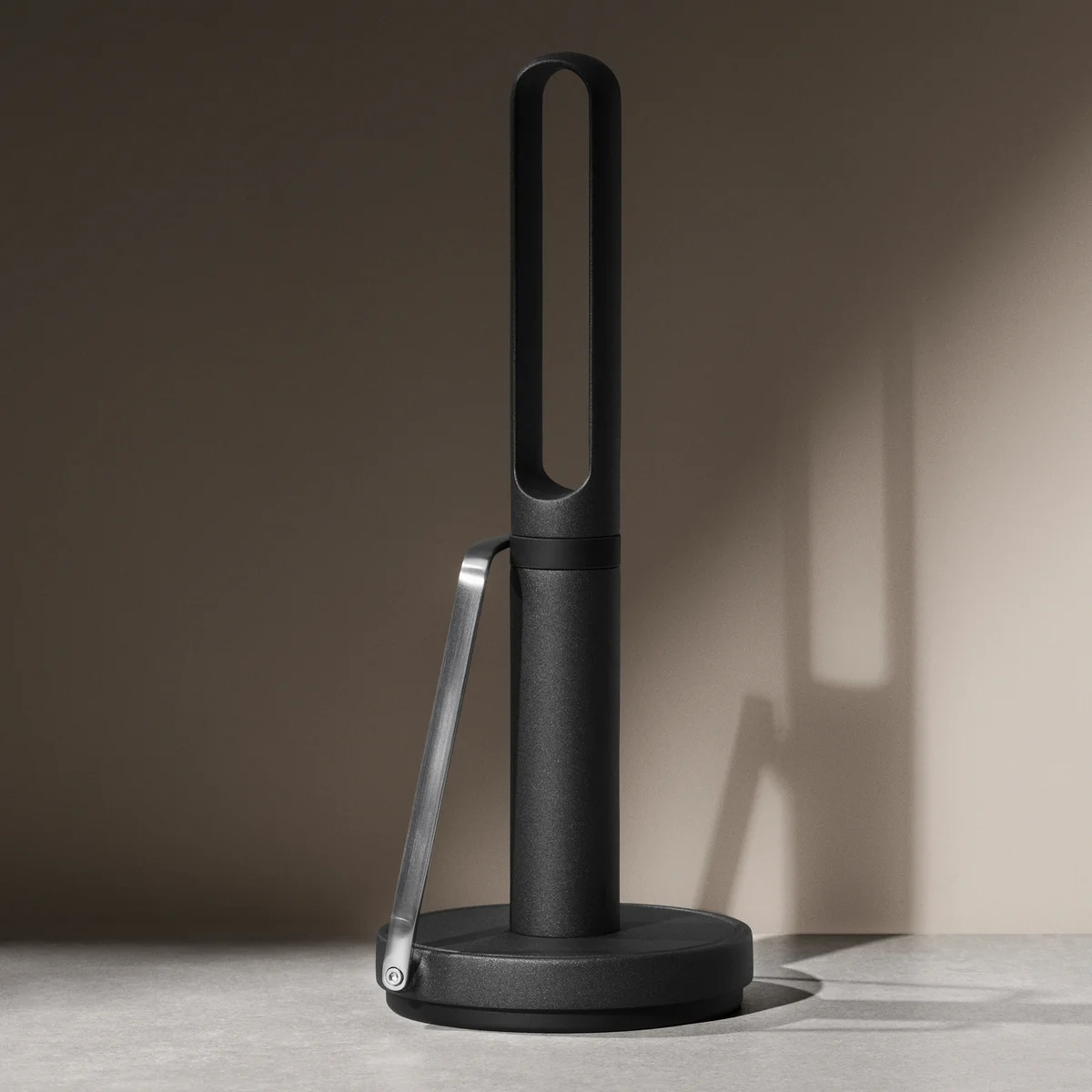 Ce porte-rouleau de cuisine est fabriqué en aluminium et en acier inoxydable de haute qualité, ce qui lui confère non seulement un aspect moderne, mais aussi une longue durée de vie et une grande stabilité pour une utilisation quotidienne. Le design minimaliste aux lignes épurées et à la surface mate s'intègre harmonieusement dans tout intérieur de cuisine et se distingue par sa finition de qualité.