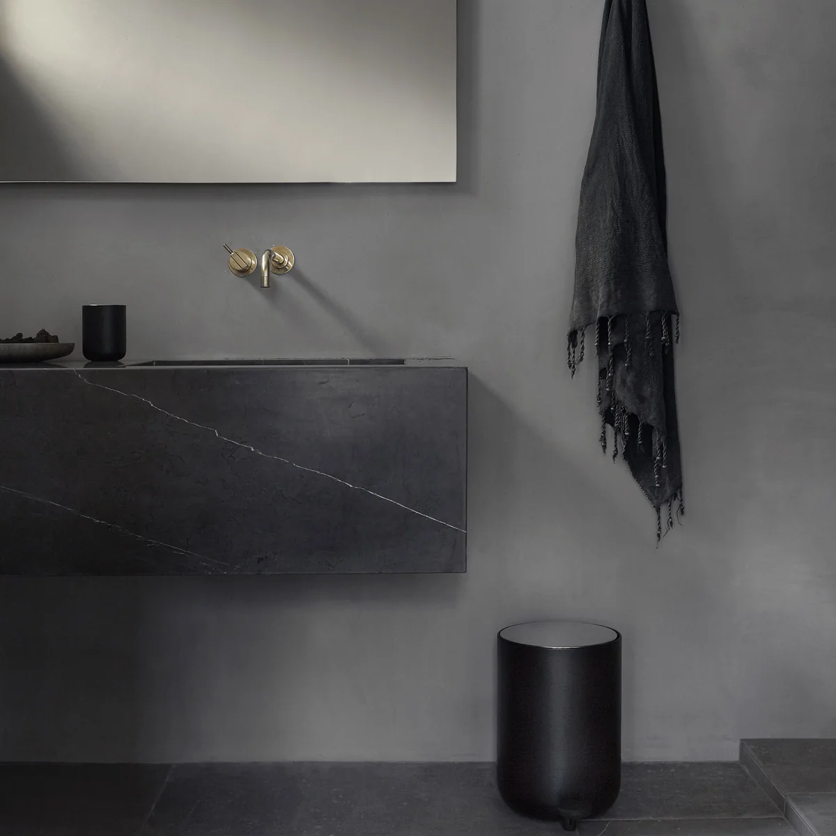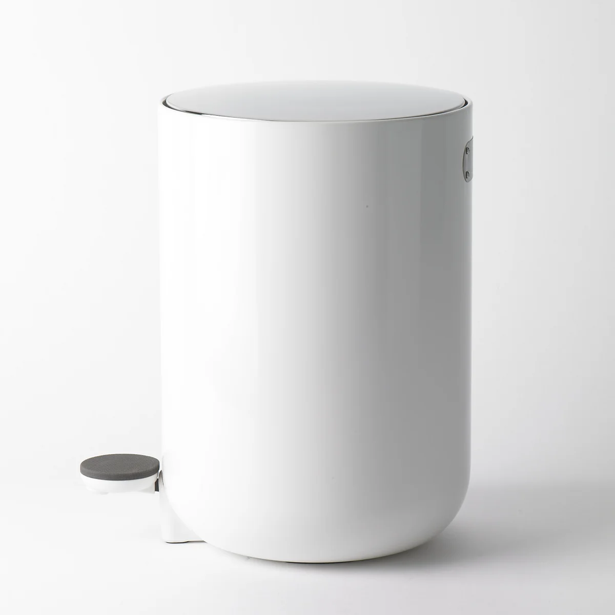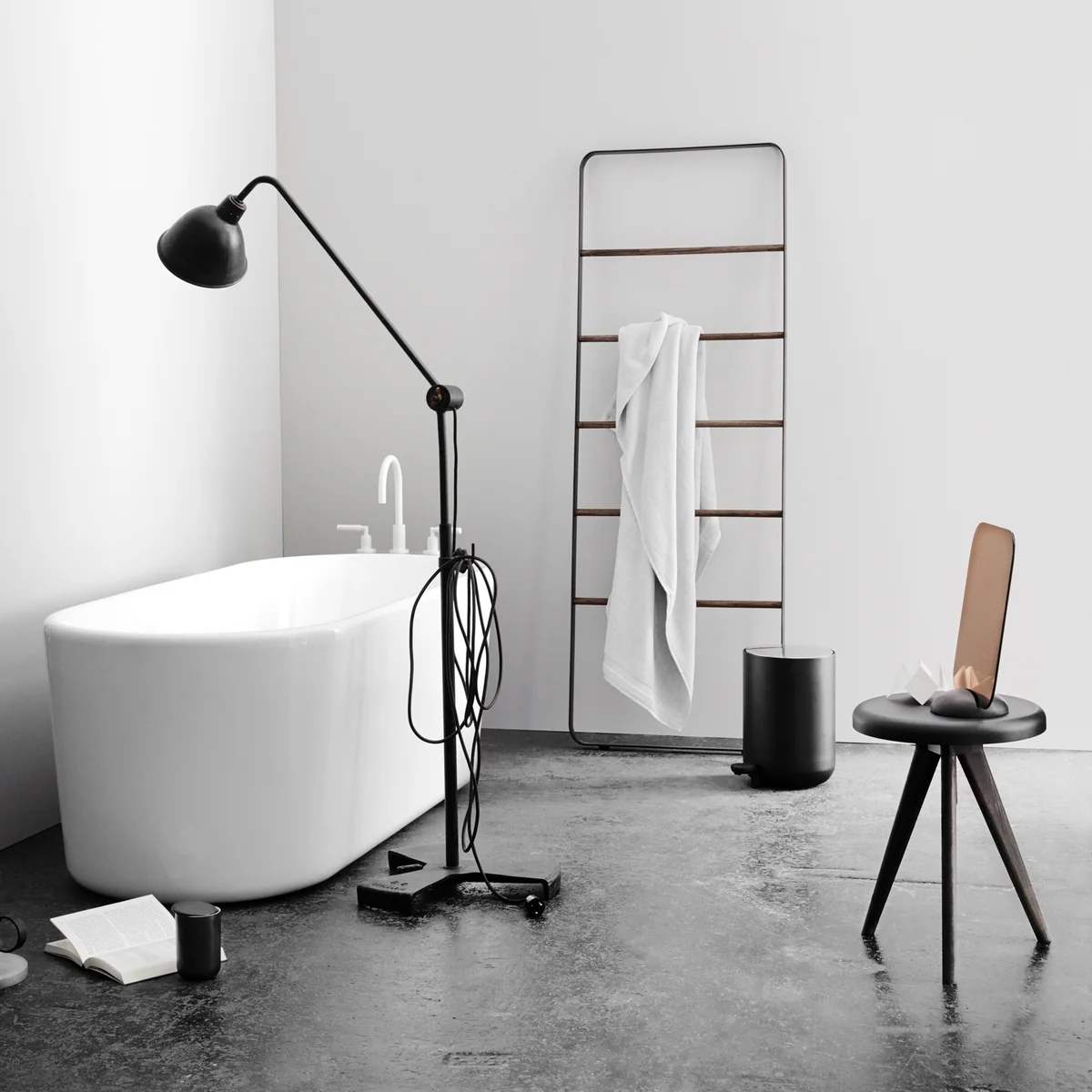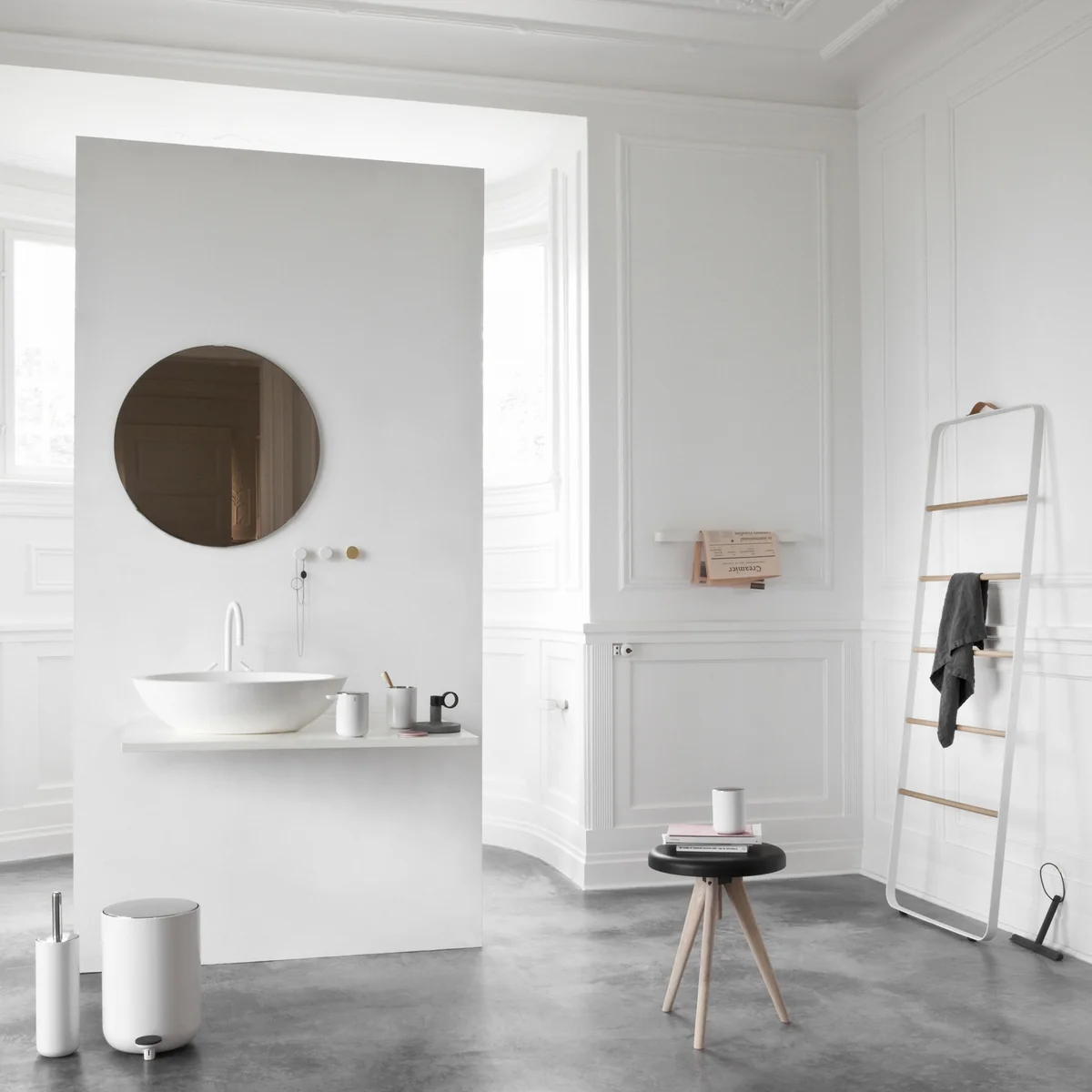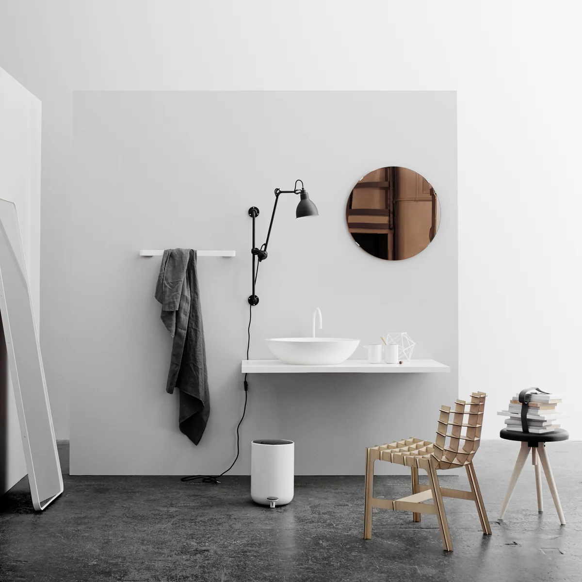 La poubelle à pédale de la collection Bath de Audo présente un design scandinave typique de l'agence de design NORM, élégant, agréablement discret et fonctionnel.