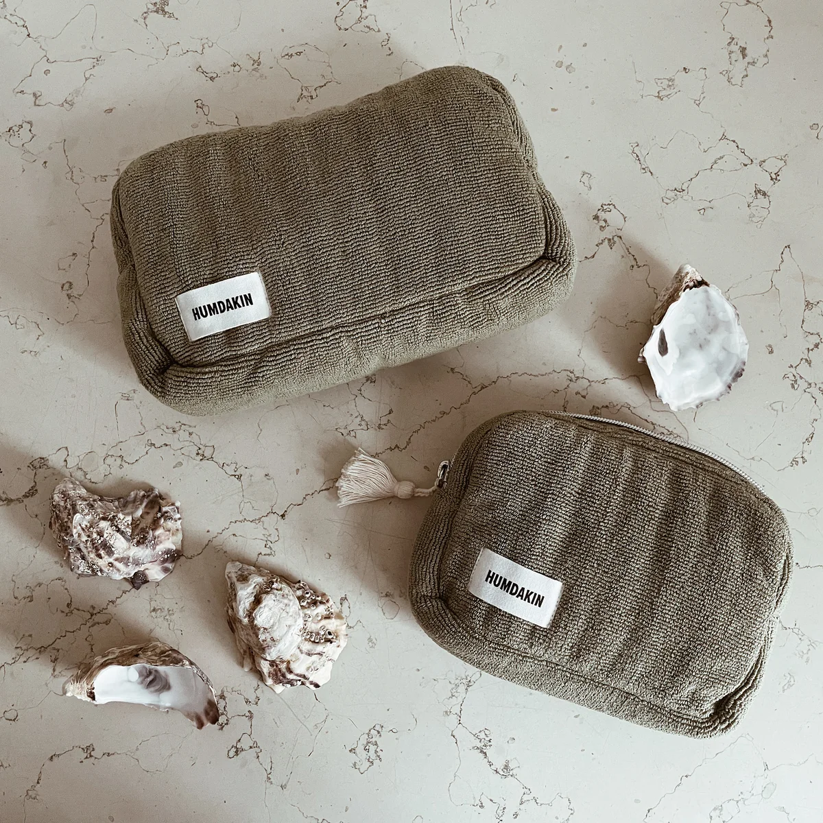 La trousse de toilette en tissu éponge d'Humdakin est une variante spéciale de la trousse de toilette de la marque danoise. La trousse de toilette est fabriquée en tissu éponge doux et absorbant, connu pour sa texture douce et sa bonne absorption de l'humidité. Cela rend la trousse de toilette idéale pour le rangement des produits cosmétiques et des articles de toilette, en particulier lorsqu'il s'agit d'objets humides ou mouillés comme les serviettes ou les maillots de bain.