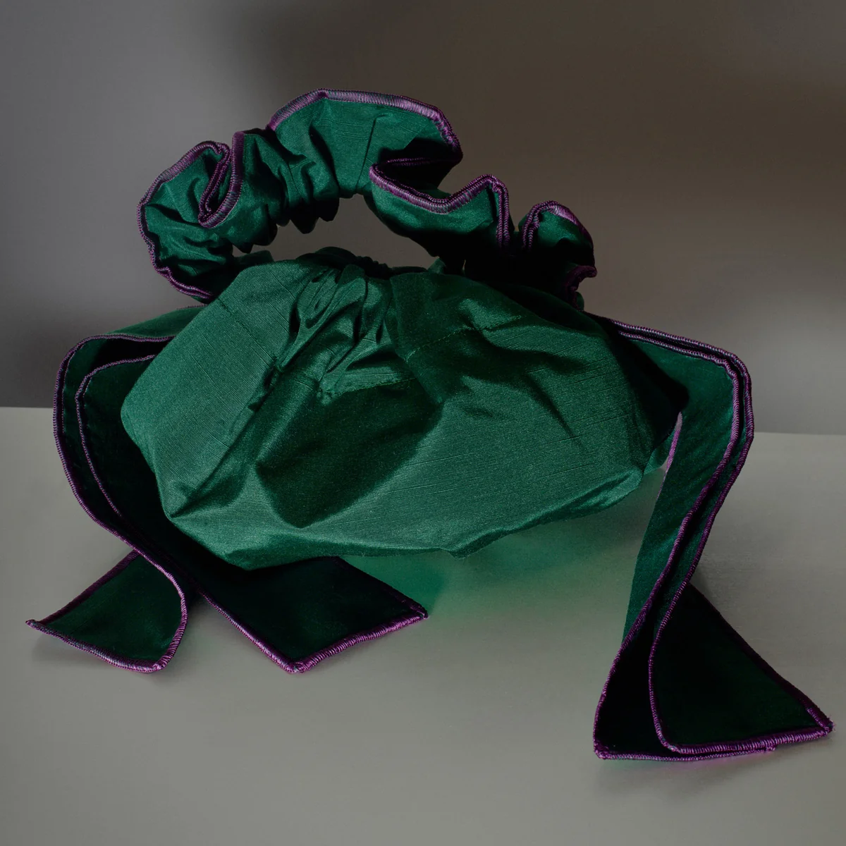 Ce sac Srunchie unique de Juslin Maunula est fabriqué à partir de textiles mis au rebut soigneusement sélectionnés et montre la beauté des matériaux réutilisés.