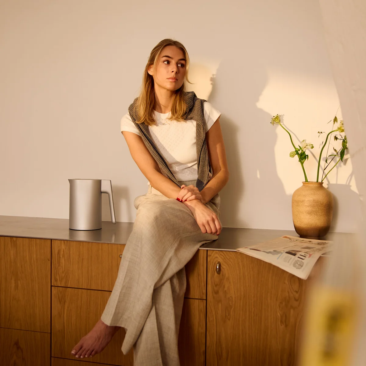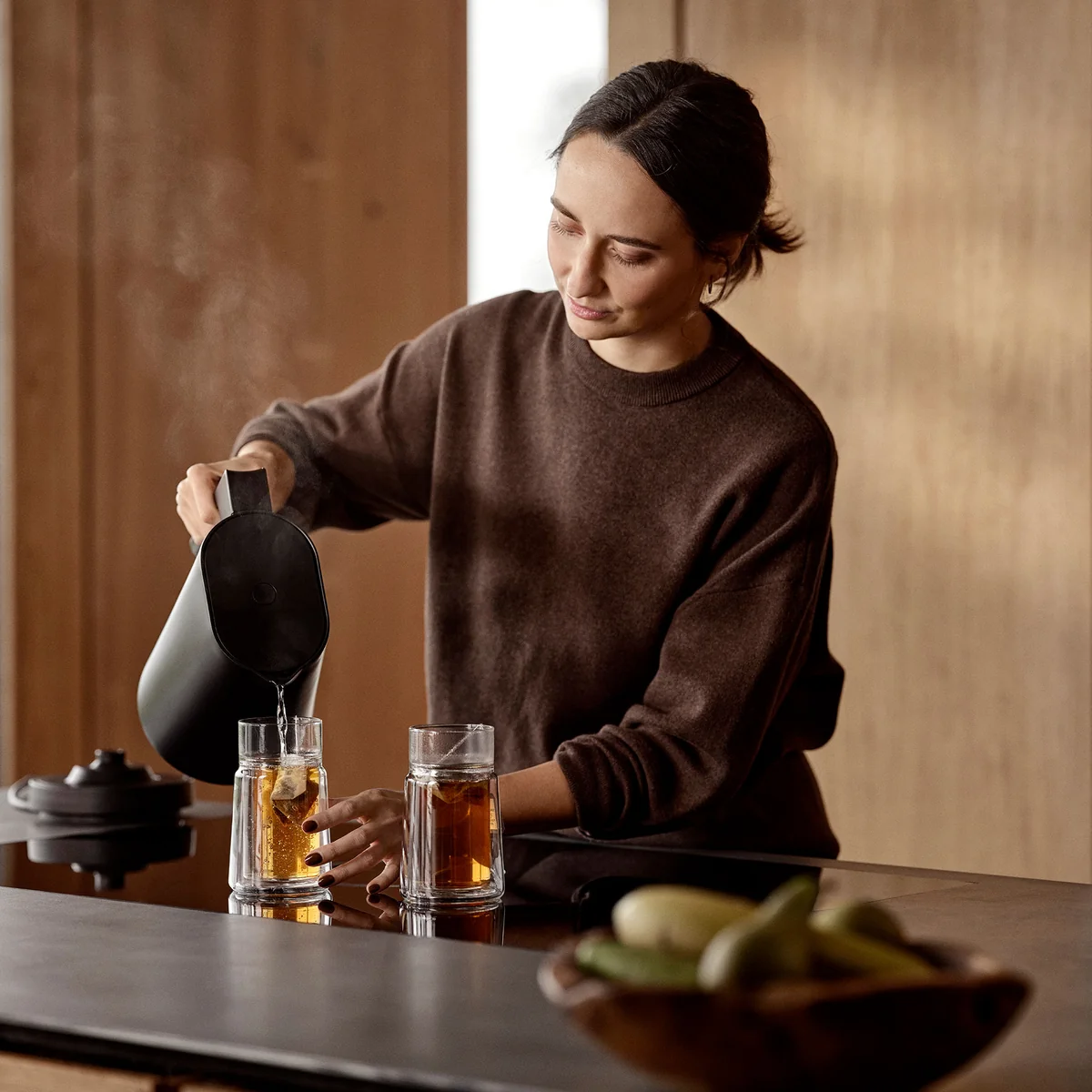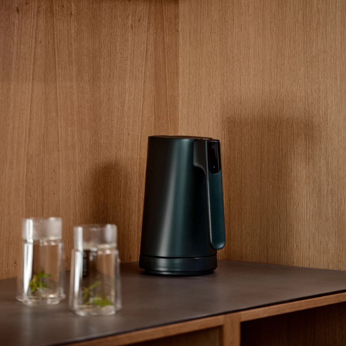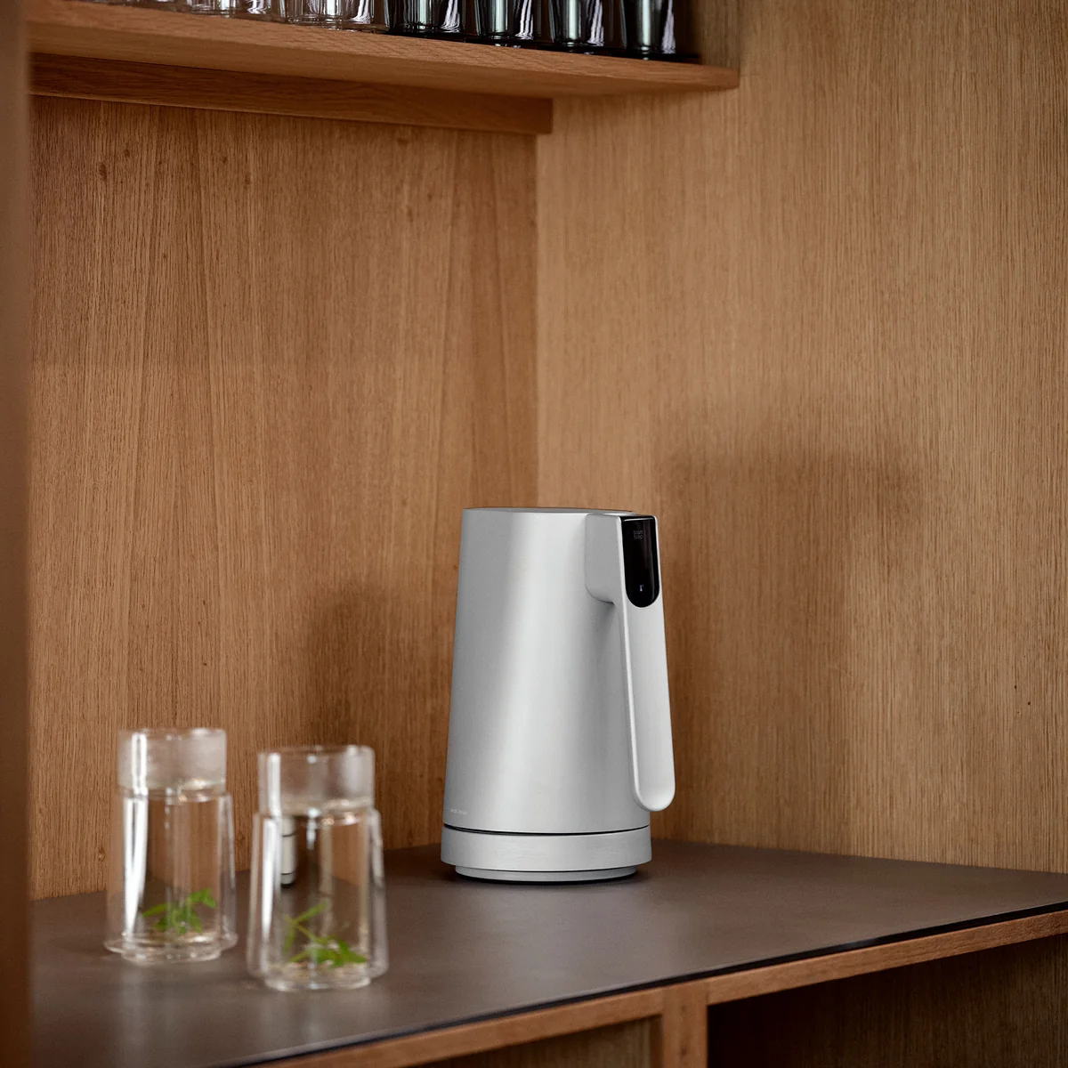 Avec la nouvelle bouilloire électrique de Jacob Jensen , faire bouillir de l'eau au quotidien devient une expérience élégante. Des matériaux de haute qualité rencontrent un design bien pensé - l'écran tactile intuitif s'éveille à l'approche et s'éteint discrètement en mode veille.