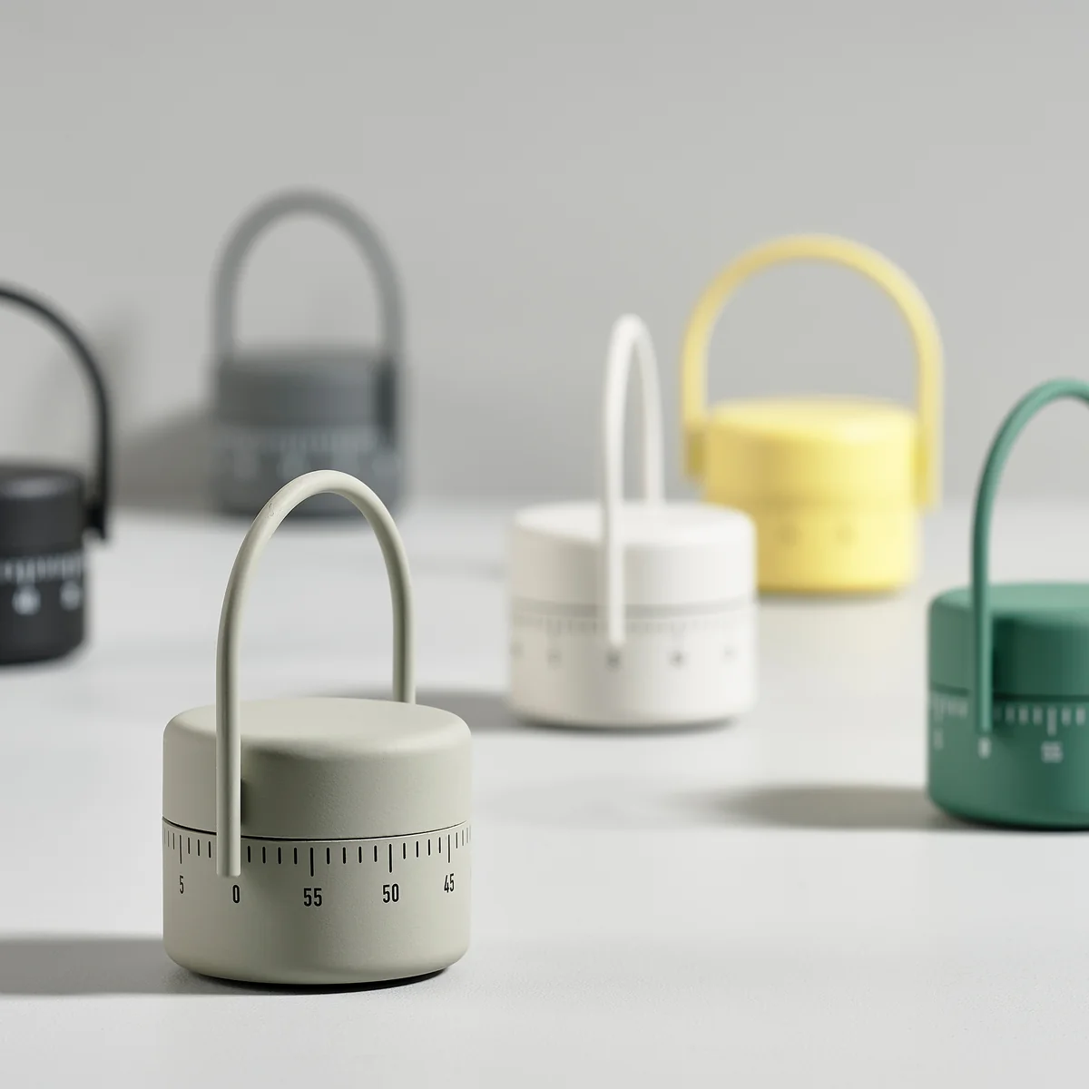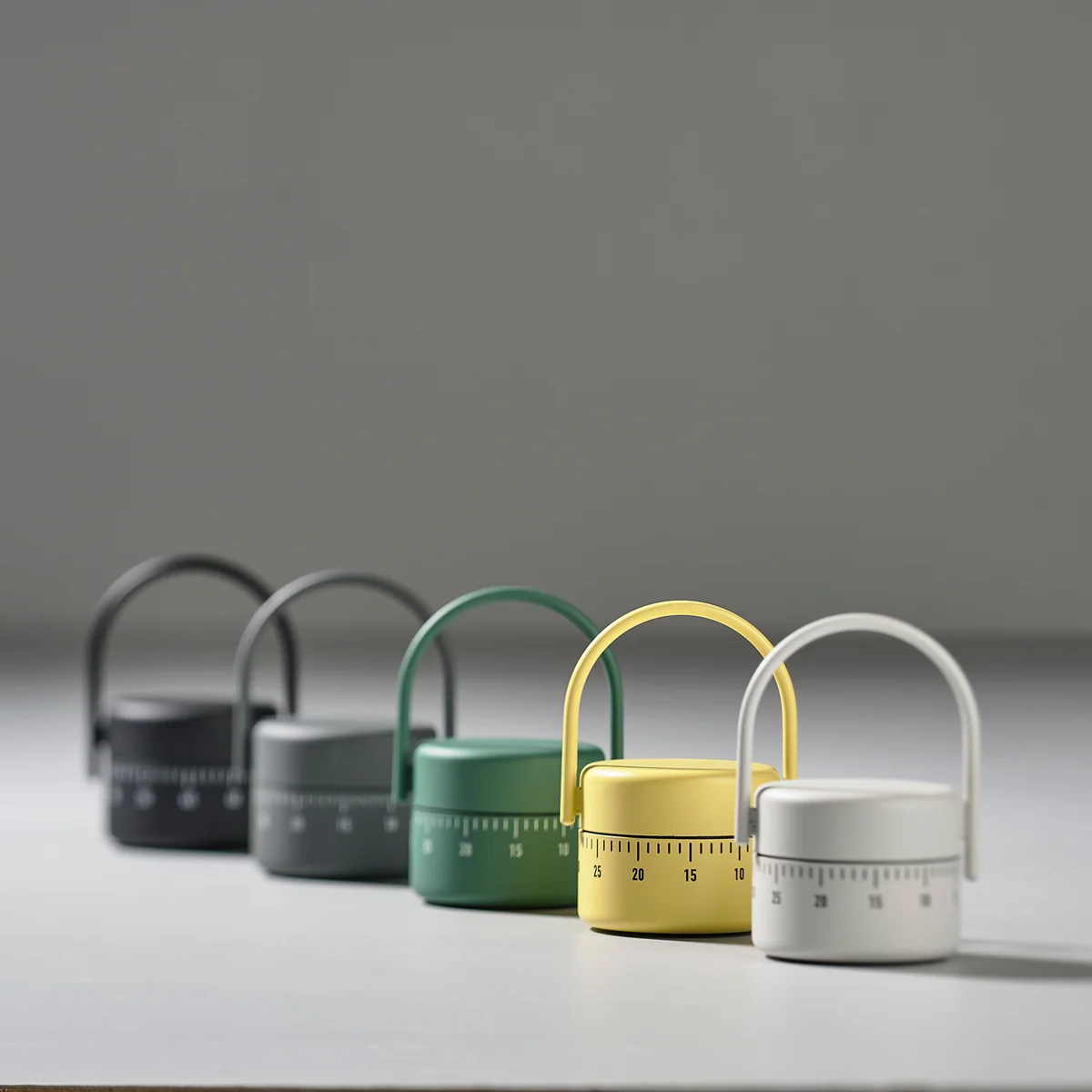 Le Singles Le réveil à minuterie est fabriqué en métal et est disponible en différentes couleurs.