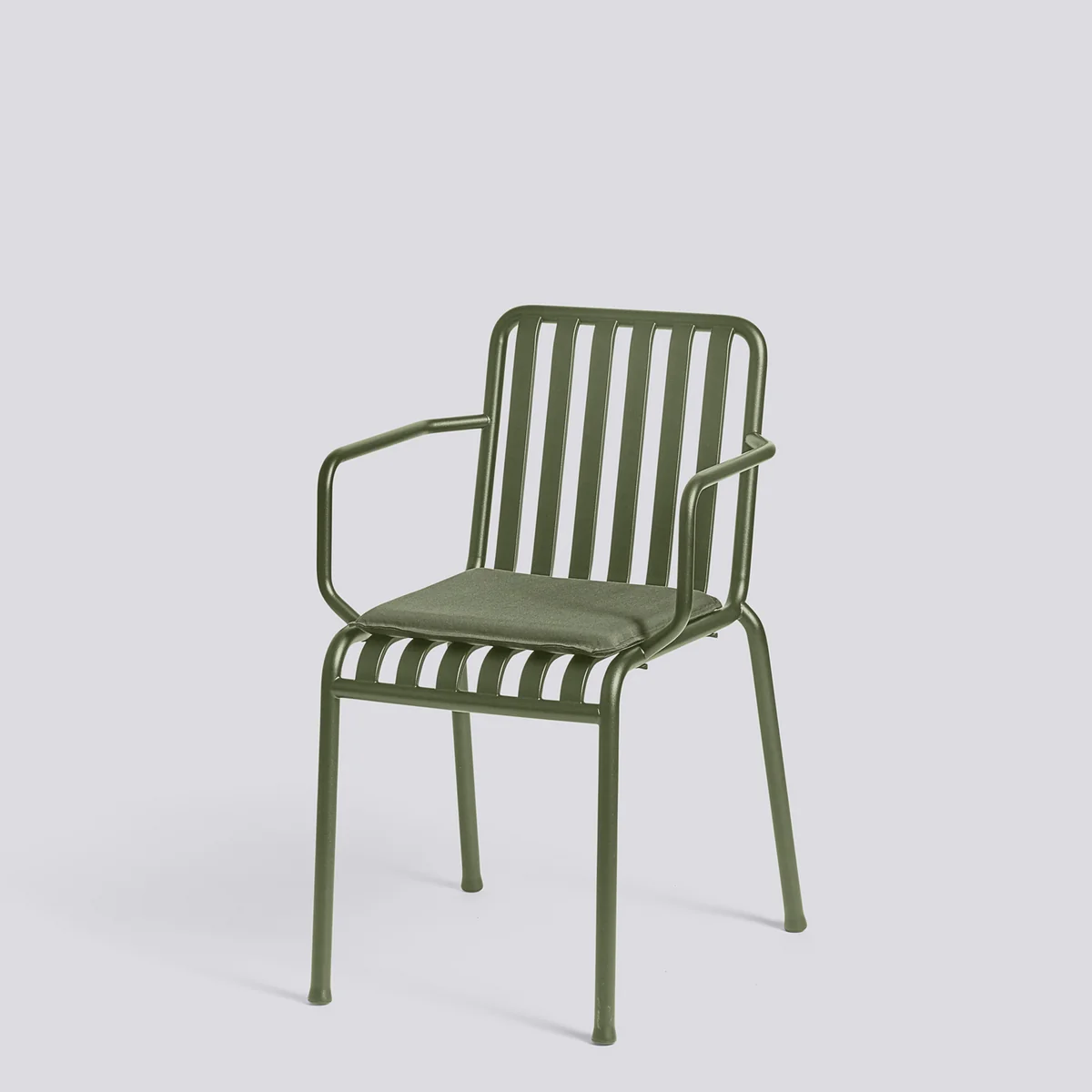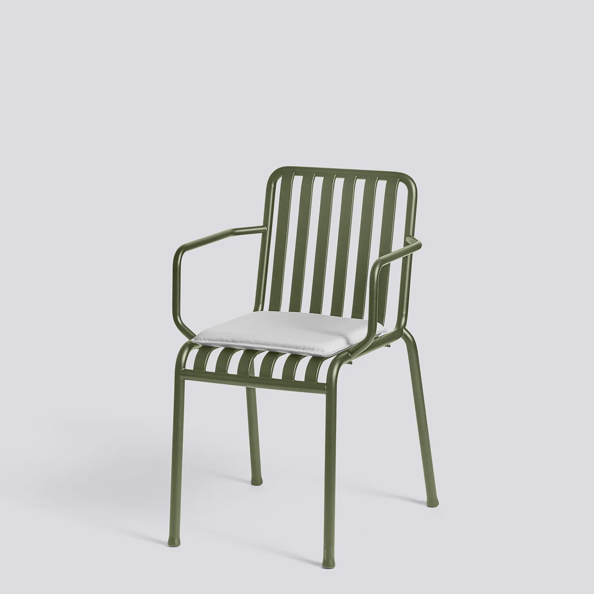 Avec le Palissade Seat Cushion d'Iskos-Berlin pour HAY, la Palissade chaise et la Palissade chaise à accoudoirs de la collection du même nom d'Erwan & Ronan Bouroullec sont encore plus confortables. Le coussin d'assise, disponible en différents coloris assortis, est composé d'un rembourrage en mousse de 15 mm d'épaisseur et d'une housse en polypropylène. Cela rend le coussin résistant aux intempéries, imperméable et robuste. Même les rayons du soleil ne peuvent pas décolorer le coussin.