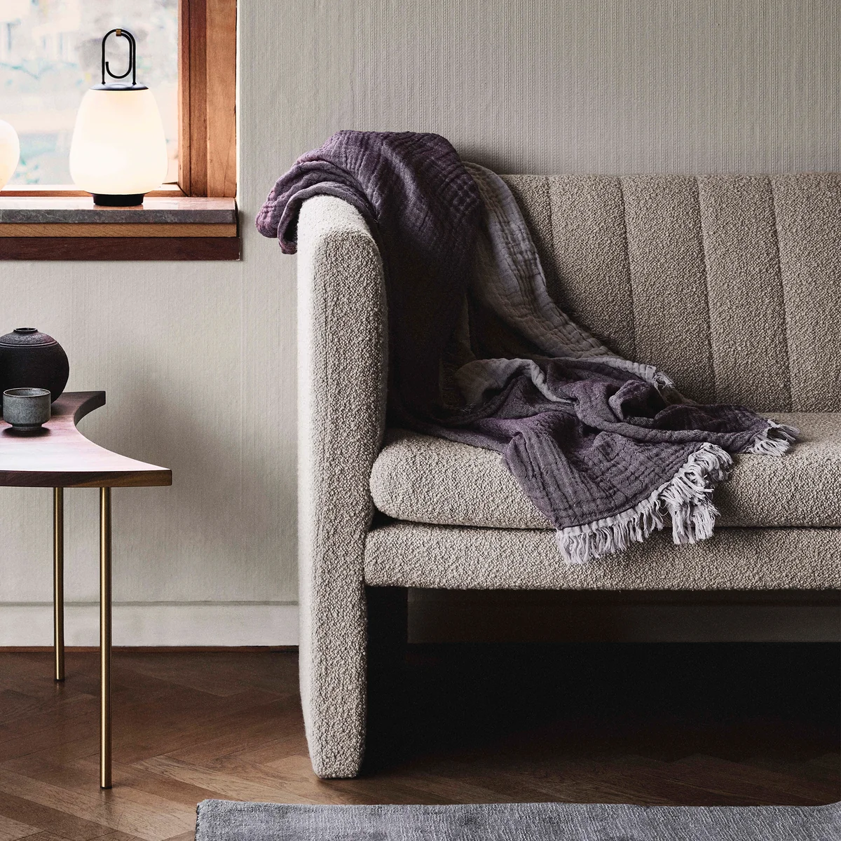 Le plafond Collect SC32 fait partie de & Tradition Collect, une série curatée d'objets d'ameublement et d'objets doux faits à la main pour la maison. Conçue par Space Copenhagen, cette couverture est fabriquée à partir de 100% de coton biologique et se compose de trois couches de coton finement tissé, agrémentées de franges grossières semi-torsadées sur tous les côtés.