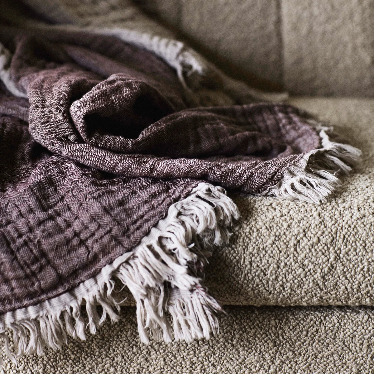 Les couches sont reliées entre elles par une couture étroite qui donne au tissu un effet froissé, créant ainsi un motif unique. Le plafond est disponible avec des faces et des dos de différentes couleurs. Ainsi, la couverture apporte toujours un vent de fraîcheur sur le lit ou le canapé.