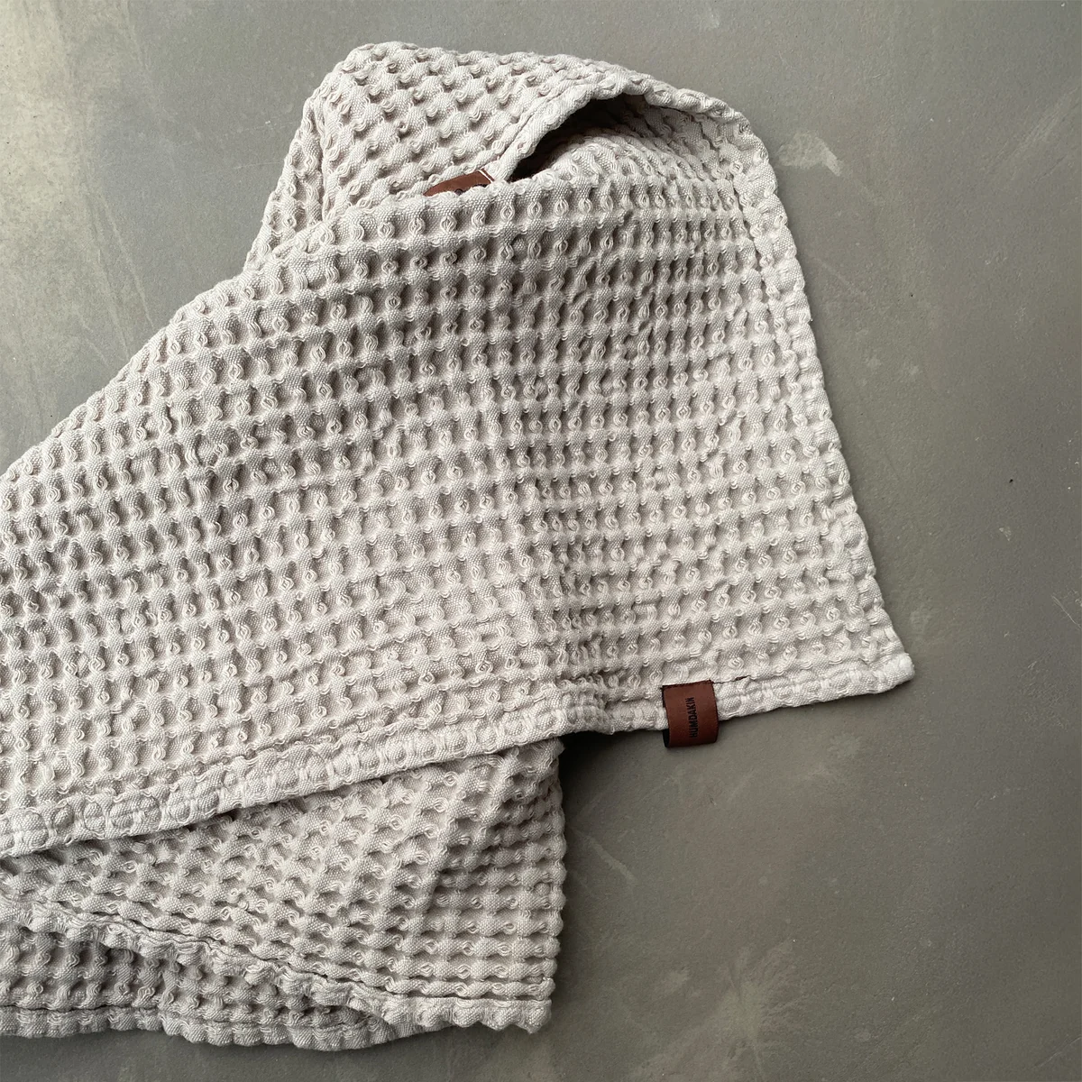 Le drap de bain à structure gaufrée d'Humdakin est un accessoire décoratif et fonctionnel pour le bain, la piscine ou la plage. Il sèche rapidement le corps tout en étant doux et agréable au toucher. Il est fabriqué en coton bio certifié GOTS.