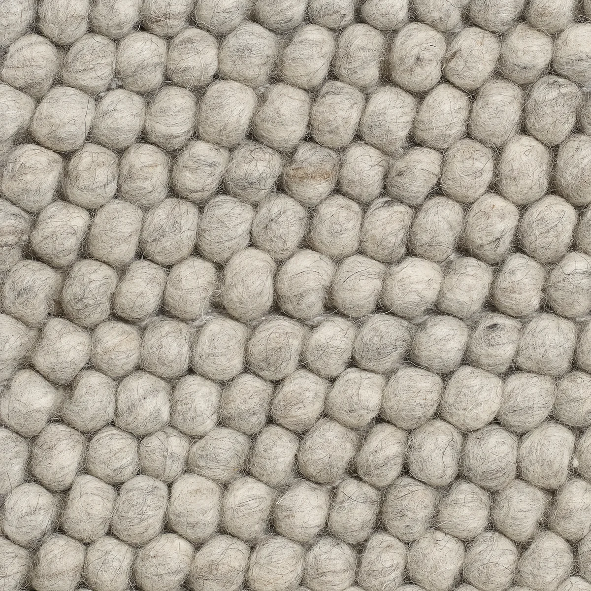La texture caractéristique du tapis est le fruit d'un travail manuel : au Népal, les petites perles sont roulées à la main jusqu'à ce qu'elles aient la forme arrondie qui rend le tapis HAY Peas si particulier. Les boules de laine sont ensuite fixées par un fil de nylon pour rendre le tapis aussi durable que beau.