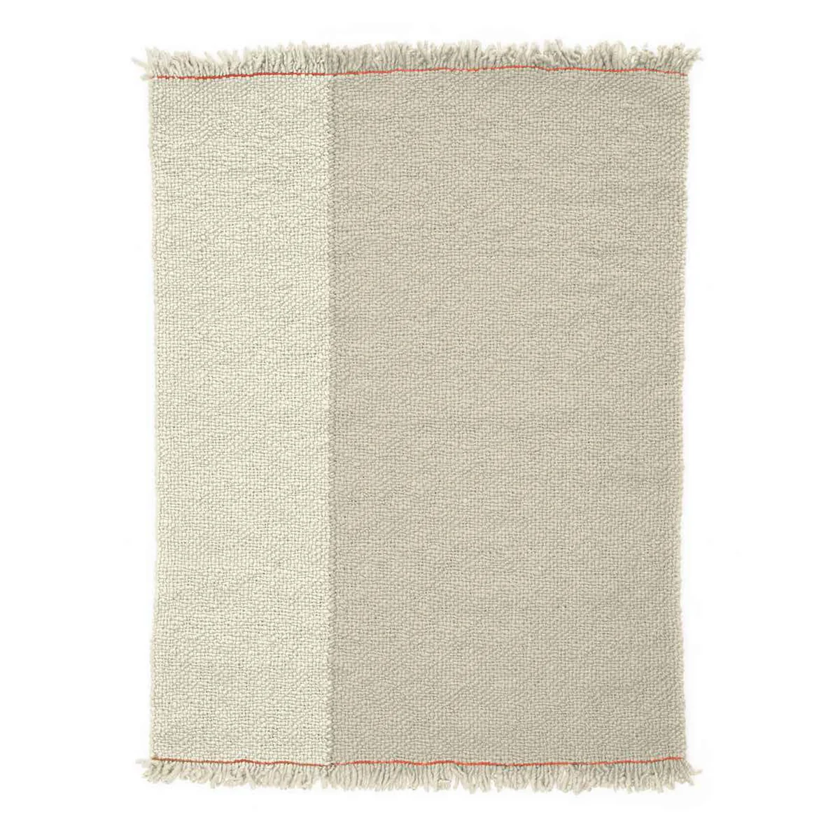 Le tapis Bold tapis de Kvadrat convainc par la combinaison de fils tissés techniquement et de fils filés à la main, ce qui lui donne un aspect épais et chaleureux. Son caractère irrégulier est pour Hella Jongerius l'incarnation de la tactilité. Pour elle, c'est la caractéristique la plus importante d'un tapis.