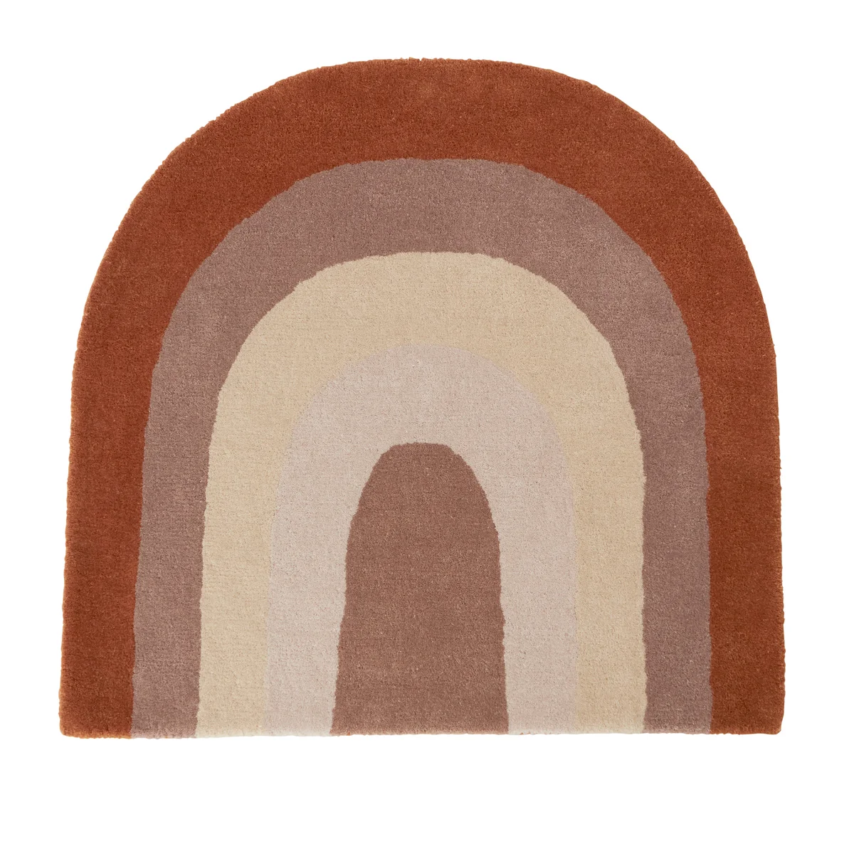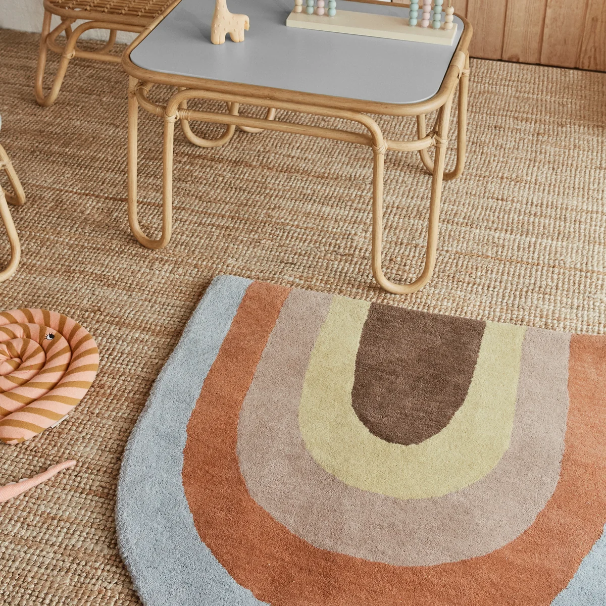Le tapis OYOY arc-en-ciel pour enfants en forme d'arc-en-ciel assure la bonne humeur et constitue un véritable accroche-regard dans la chambre des enfants. La silhouette semi-circulaire du tapis correspond à celle d'un arc-en-ciel, de sorte que les rayures colorées y sont uniformément disposées.