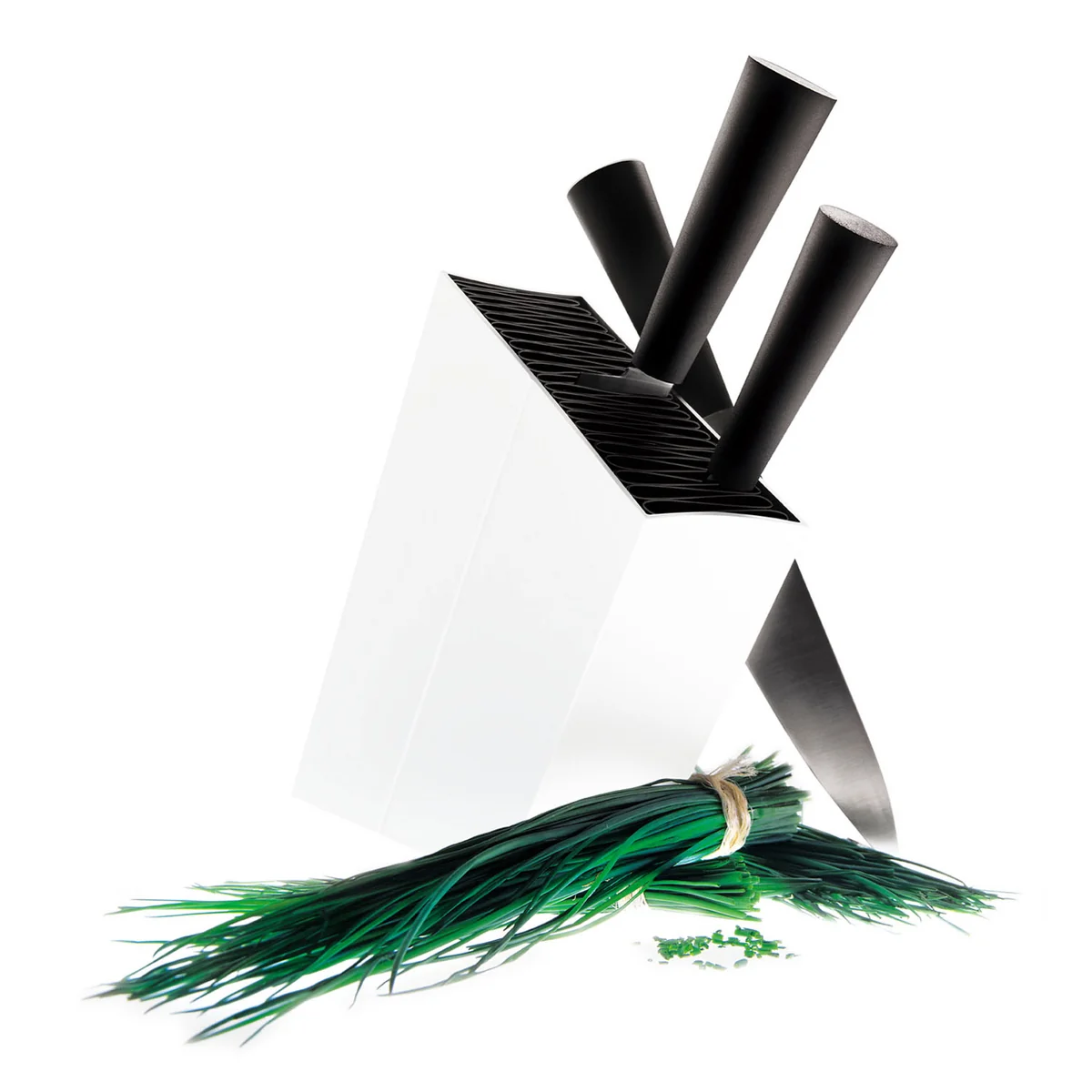 Le bloc à couteaux de Eva Solo se fond, grâce à un look simple et moderne, dans l'atmosphère de tout type de cuisine et garantit un ordre hygiénique des ustensiles de cuisine.