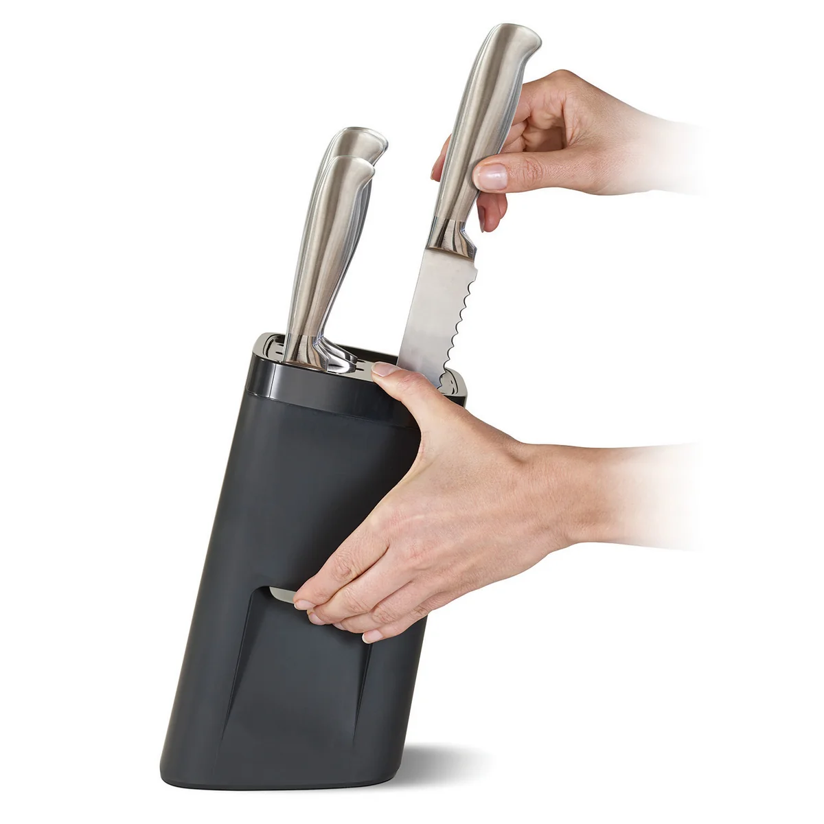 Il n'est par ailleurs pas possible que des couteaux haut de gamme soient endommagés par ce mécanisme car l'intérieur du bloc de couteaux est doté d'une couche en caoutchouc souple.