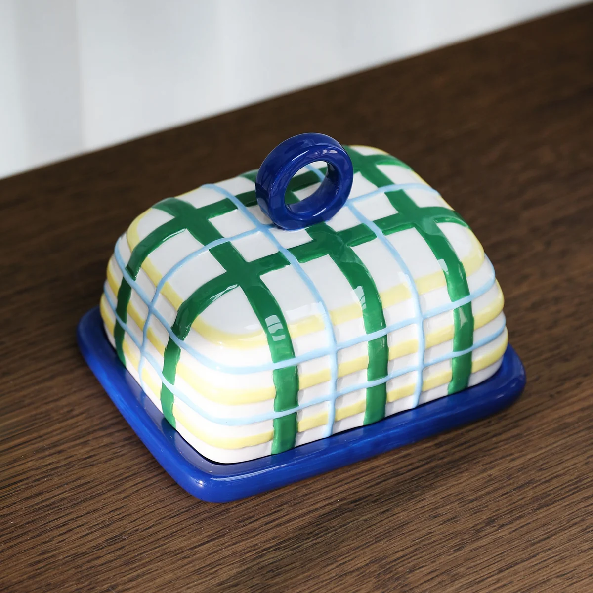 Le beurrier Plaid de & klevering confère à votre table à manger un look moderne et frais. Fabriqué en dolomite émaillée de haute qualité, ce beurrier se distingue par sa durabilité et son design élégant. Le motif graphique apporte une touche d'espièglerie et souligne l'individualité de la pièce. Le set est livré complet avec une petite assiette et un couvercle assorti qui permet de garder votre beurre toujours frais. Ce complément élégant élève vos repas quotidiens à un niveau supérieur et est disponible en deux couleurs attrayantes.