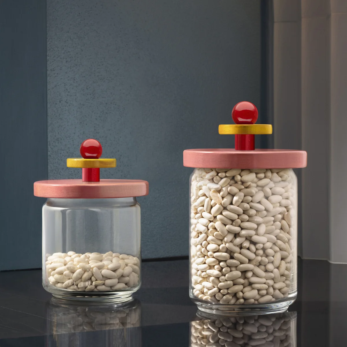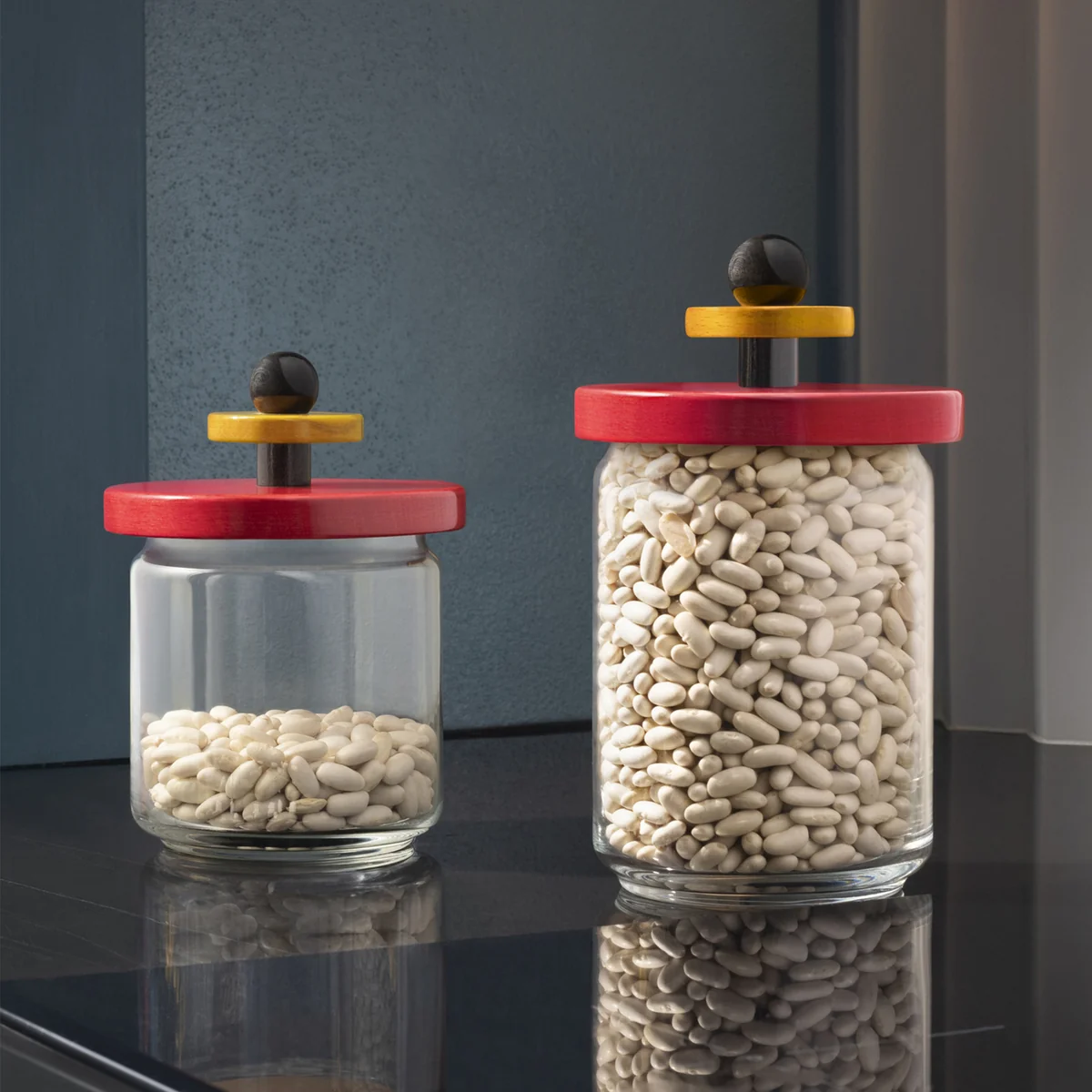 Si vous êtes à la recherche d'une boîte spéciale, vous ferez le bon choix avec les Twergi La boîte de stockage de Alessi est le bon choix. Colorée et de forme sculpturale, typique du designer Ettore Sottsass, la boîte de rangement impressionne par son aspect extraordinaire, qui devient un point fort de chaque cuisine. Le bocal en verre et le couvercle scellé en bois de tilleul de qualité alimentaire, rendent Twergi une boîte de rangement idéale et spéciale. Le muesli, les pâtes, le riz et bien d'autres aliments peuvent être conservés de manière élégante et sûre dans les bocaux de stockage de Alessi , afin qu'ils restent frais plus longtemps. Le verre transparent vous permet également de garder la trace de vos fournitures.