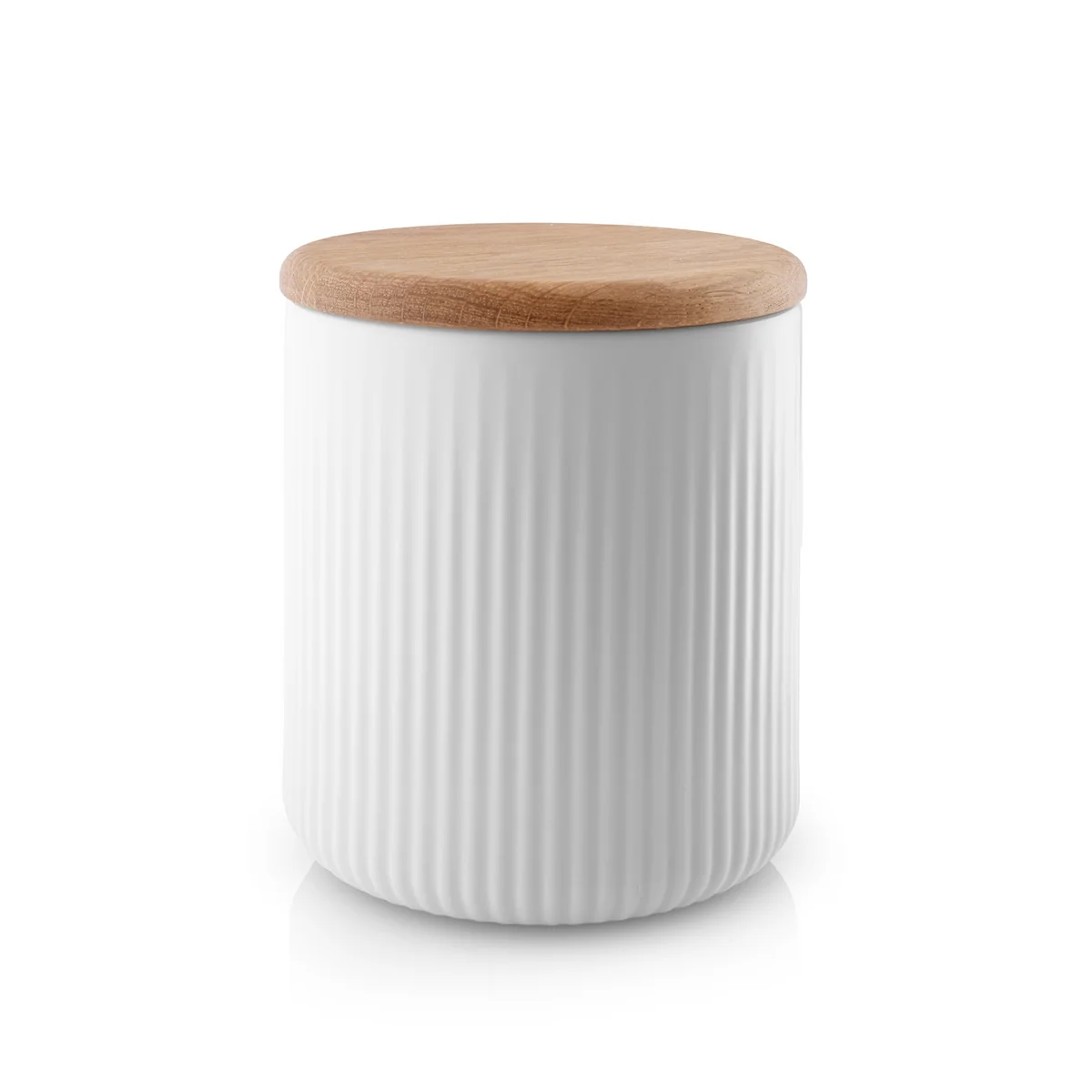 Les boîtes sont en porcelaine avec le motif typique des rainures de la série Legio Nova. Le plafond est en bois de chêne et silicone. Le couvercle hermétiquement fermé préserve le goût et l'arôme du contenu lorsque les aliments sont dans les boîtes de conserve. Les canettes vont au lave-vaisselle, le couvercle en bois est facile à nettoyer avec un chiffon humide.