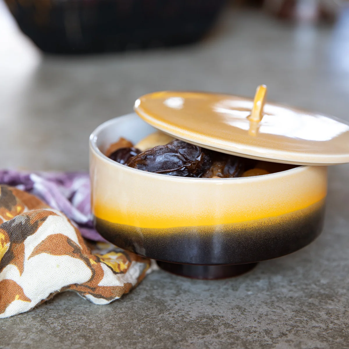 La coupe Bonbon HKliving 70's est un accessoire charmant qui fait entrer l'esprit des années 1970 dans votre intérieur. Avec son schéma de couleurs vives et son motif emblématique de cette époque, il donne une touche vivante à n'importe quelle pièce. Cette coupe fabriquée à la main n'est pas seulement une pièce décorative élégante, elle est aussi extrêmement fonctionnelle. Elle est parfaite pour ranger des petits en-cas, des bonbons ou des bijoux. La coupe Bonbon est une expression d'individualité et de charme vintage et attirera certainement les regards. Faites une déclaration unique dans votre maison avec cette coupe de HKliving et profitez de la touche de nostalgie qu'elle apporte.