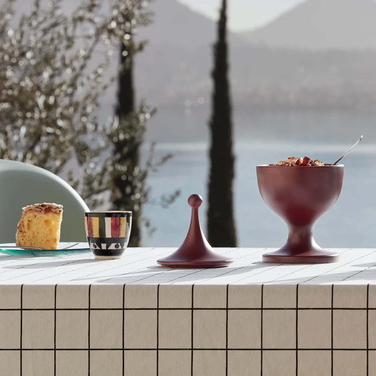 Le design provient de l'architecte américain Alexander Girard, qui a fabriqué les conteneurs en bois de sa propre main en 1952. En collaboration avec la famille Girard, le studio suisse Vitra a réédité les récipients en céramique.