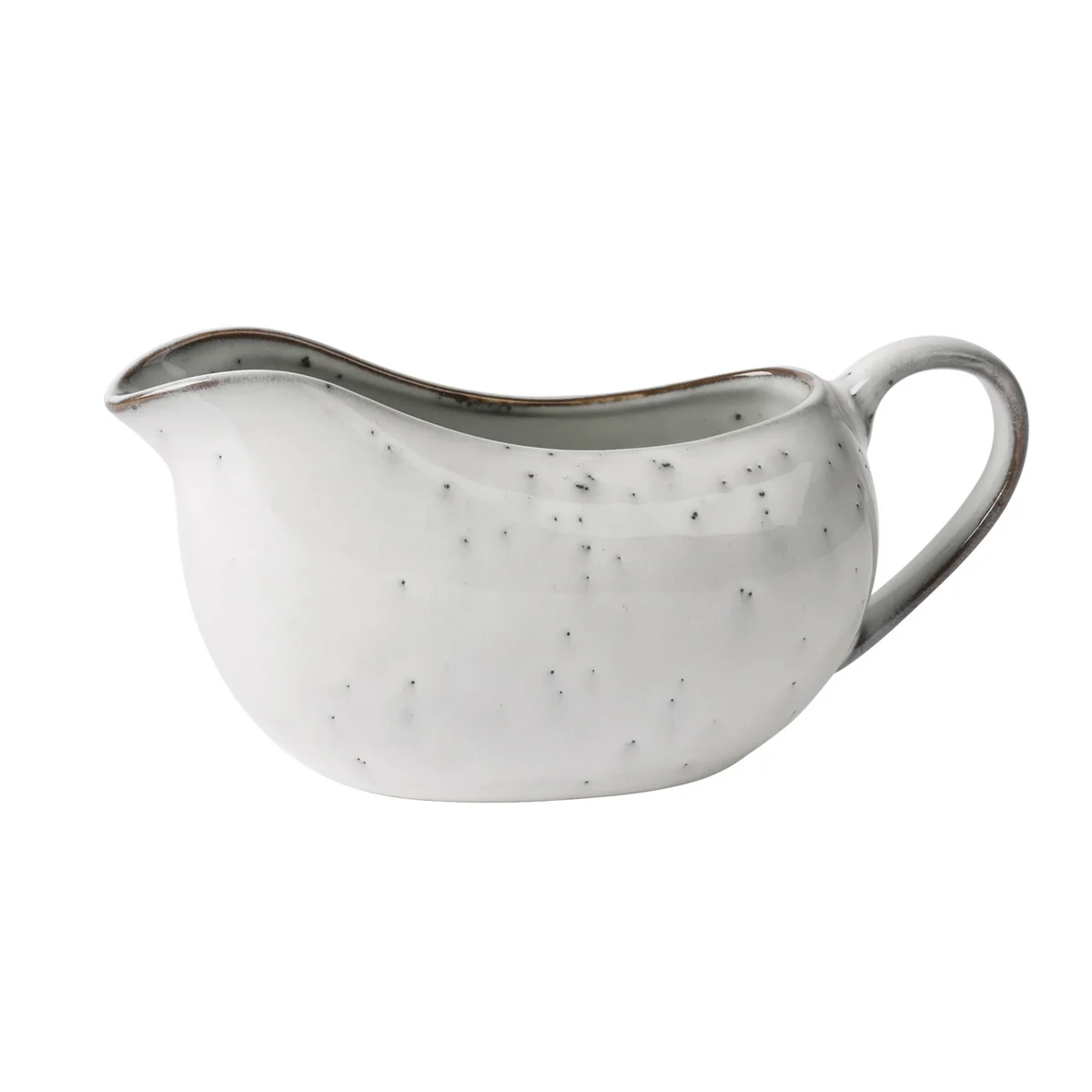 La saucière Nordic Sand permet d'ajouter une touche d'élégance à la table de la salle à manger. Ce bol en grès émaillé réactif a une couleur beige douce qui souligne la beauté tranquille du bol à sauce. Grâce à l'émail réactif, chaque pièce présente un motif unique, ce qui fait de chaque bol une pièce unique dans la collection de vaisselle.