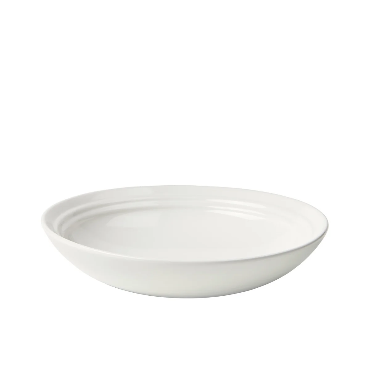 La collection, fabriquée en faïence blanche et recouverte d'un émail "Chalk White", confère à la table une note accueillante. La céramiste danoise Julie Bonde a conçu cette série dont les deux anneaux marquants encadrent artistiquement les assiettes.