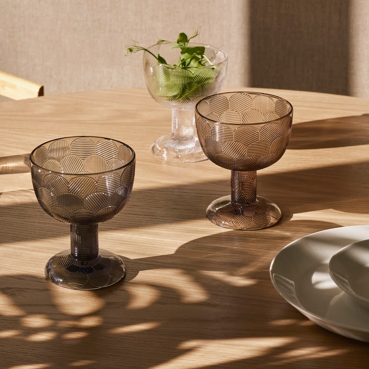 Le bol avec pied Miranda de Heikki Orvola pour Iittala convainc par un design de feuilles saisissant qui apporte un morceau de nature à chaque table à manger. Le bol en verre pressé est idéal pour servir des en-cas et des desserts et même sans contenu, la lumière est réfléchie dans le verre de façon magnifique.