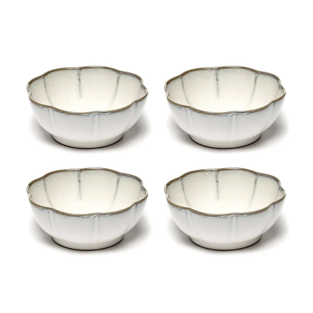 Le Inku bol de Serax se présente dans un look nordique, orné par la forme de fleur des coupelles. Les bols sont disponibles dans un set pratique de 4 pièces et conviennent à merveille pour servir de petits accompagnements ou des snacks. Les bols peuvent ainsi être utilisés aussi bien sur la table à manger que sur la table basse.