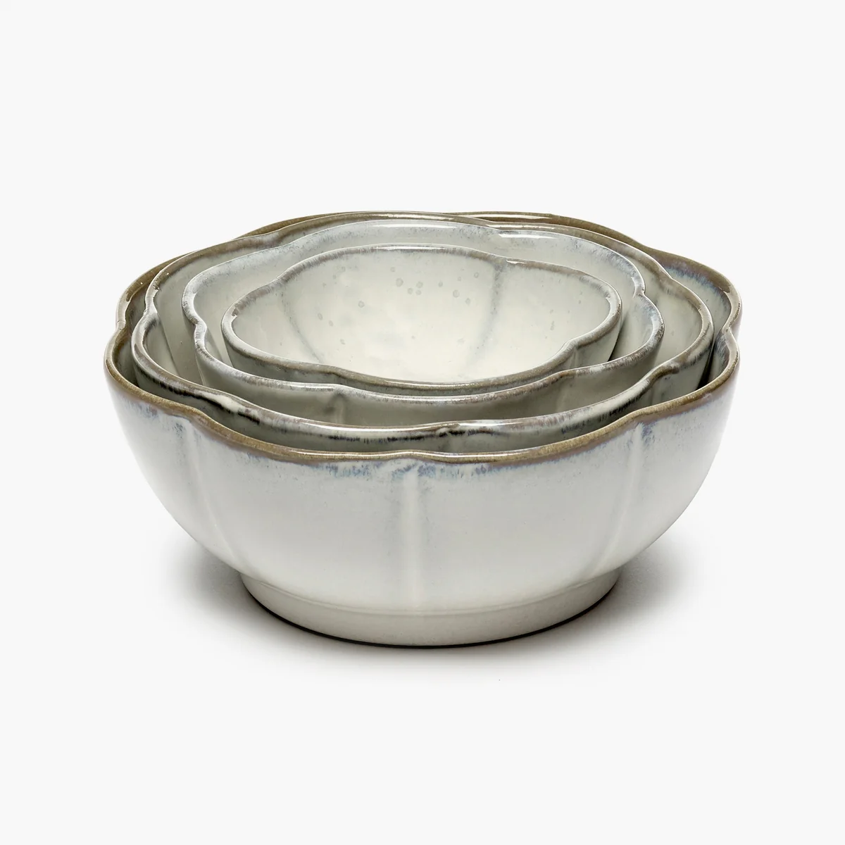 Le Inku bol de Serax se présente dans un look nordique, orné par la forme de fleur des coupelles. Les bols sont disponibles dans un set pratique de 4 pièces et conviennent à merveille pour servir de petits accompagnements ou des snacks. Les bols peuvent ainsi être utilisés aussi bien sur la table à manger que sur la table basse.