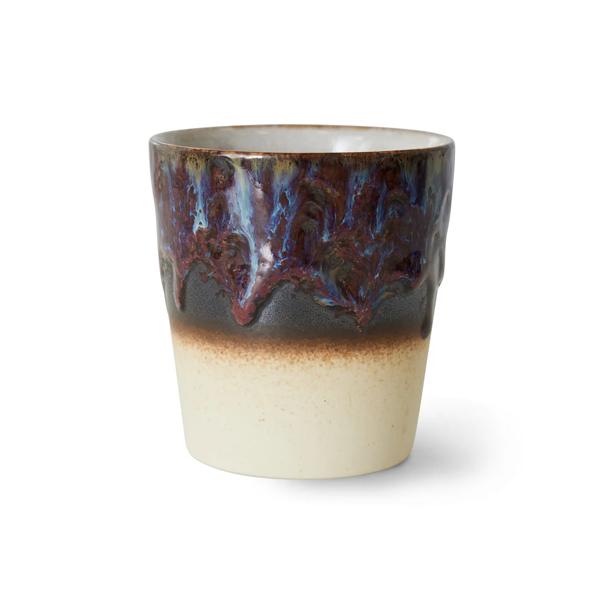 Les gobelets à café 70's de HKliving sont une raison de se réjouir pour les collectionneurs de longue date comme pour les nouveaux venus : les gobelets fabriqués en grès sont aussi uniques que l'empreinte digitale d'une personne, car ils sont fabriqués et émaillés à la main. C'est ainsi que naissent les magnifiques motifs et couleurs qui rehaussent individuellement chaque table à manger et chaque vaisselier.