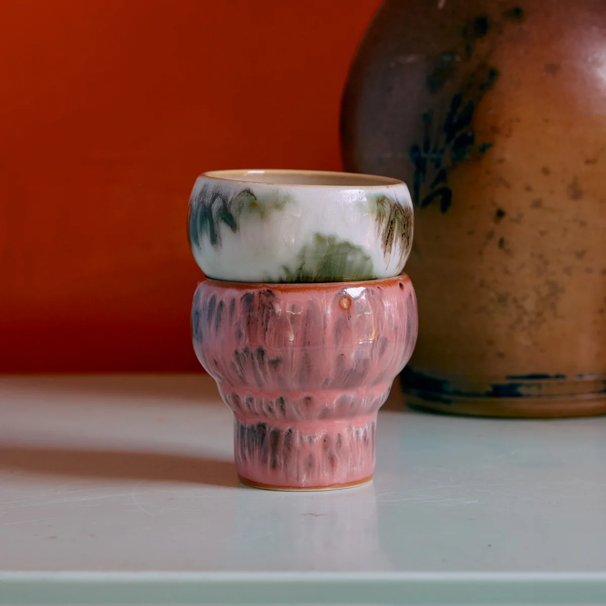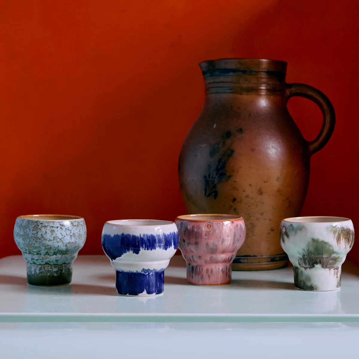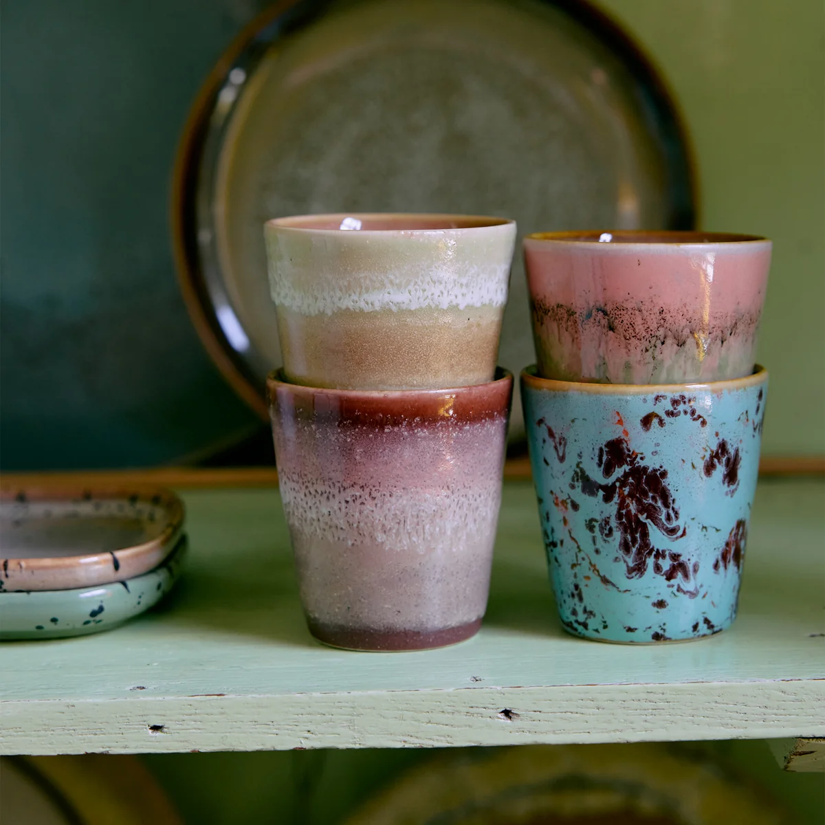 70's Une raison de se réjouir pour les collectionneurs de longue date comme pour les nouveaux venus : les tasses à espresso & de HKliving en grès sont aussi uniques que l'empreinte digitale d'une personne, car elles sont fabriquées et émaillées à la main. C'est ainsi que naissent les magnifiques motifs et couleurs qui valorisent individuellement chaque table à manger et chaque armoire à vaisselle. De plus, la porcelaine aux parois épaisses protège des mains brûlantes.