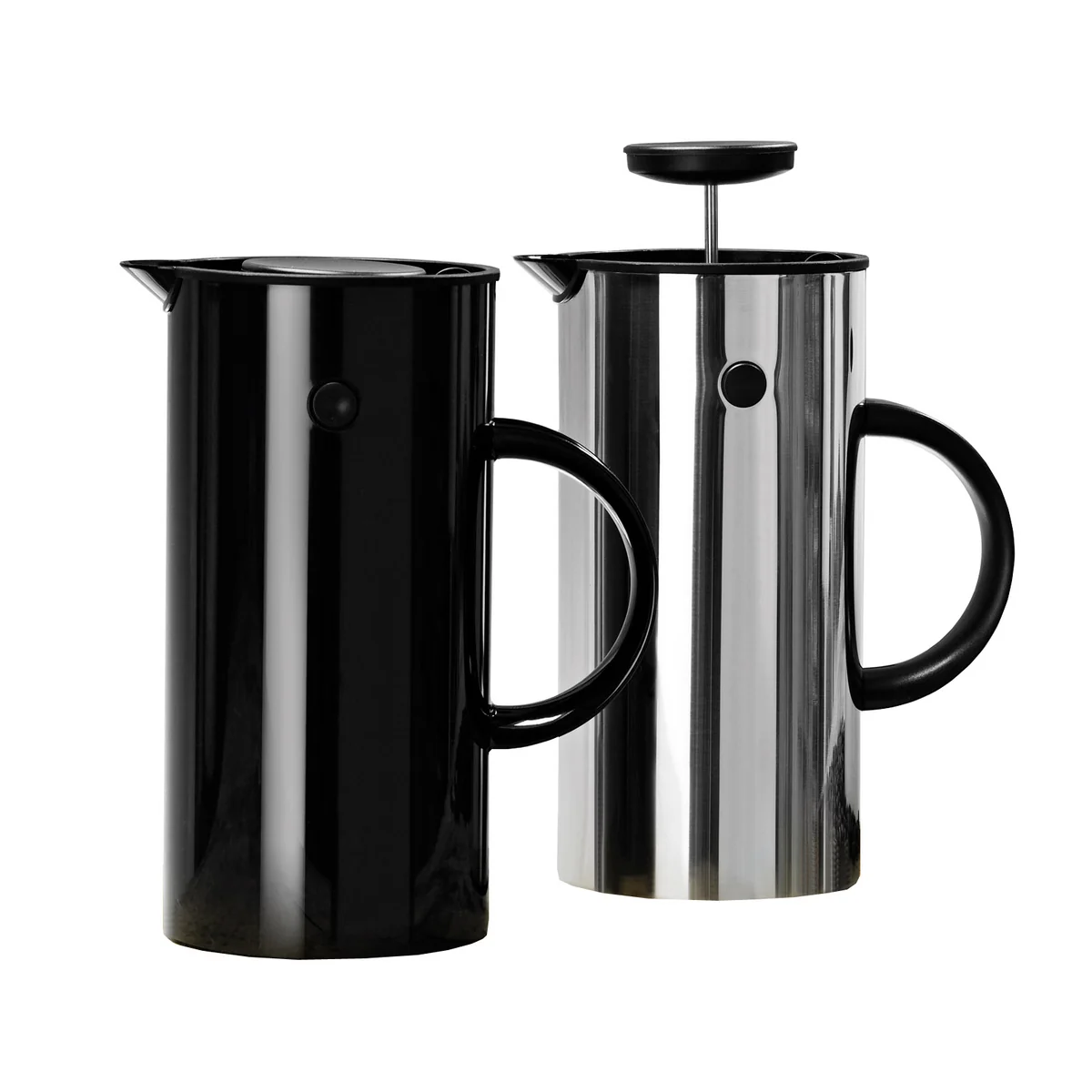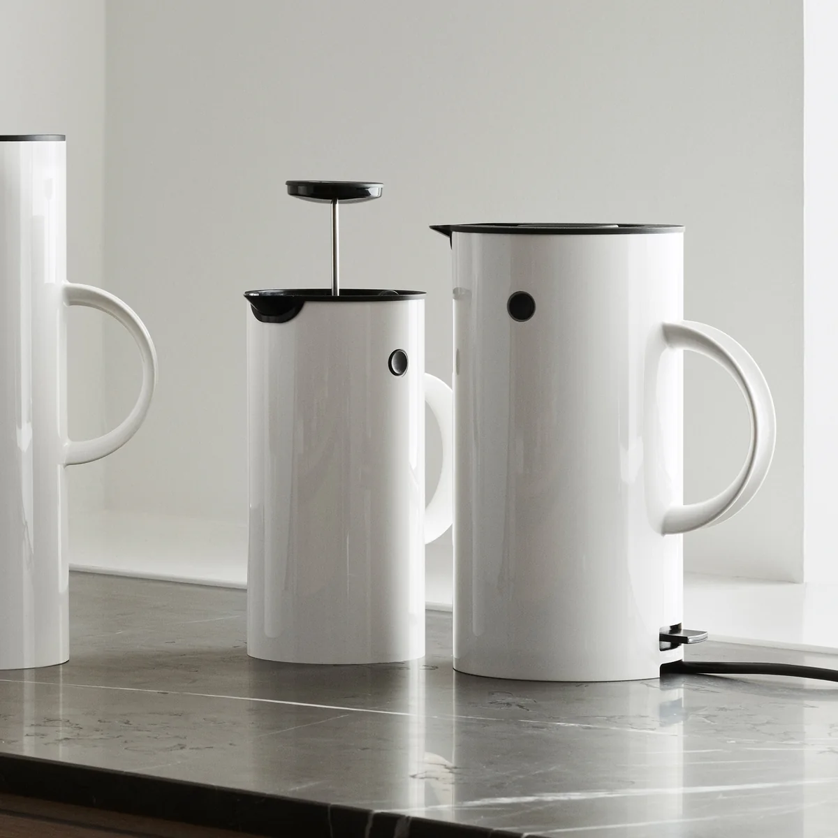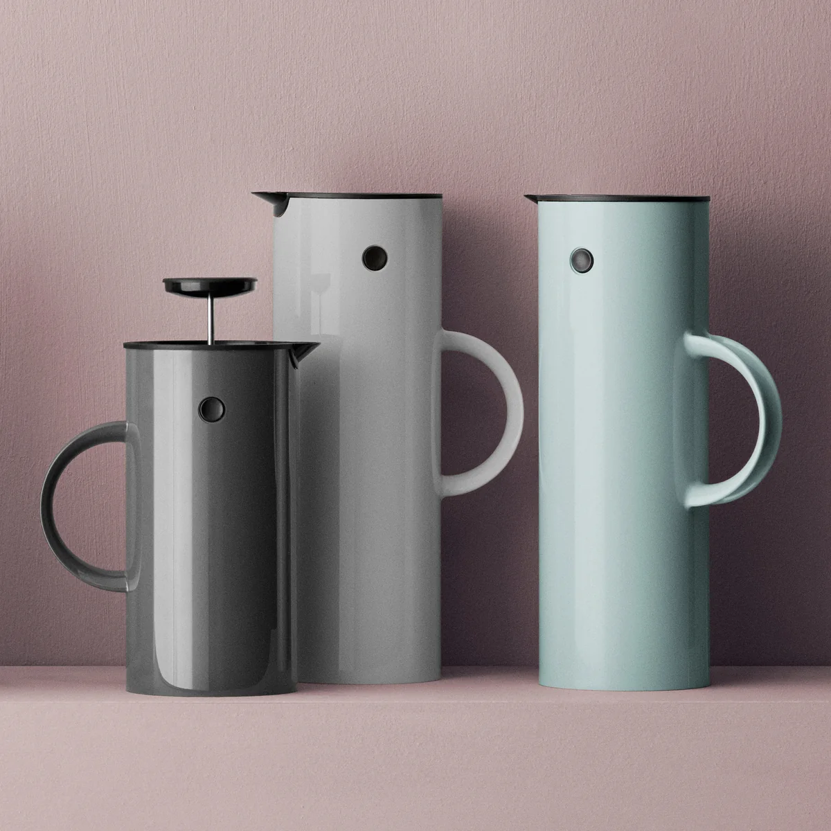 Conçu en 1977 pour Stelton, le pichet isolant primé d Erik Magnussen à la fonction de cafetière est désormais disponible en cinq versions différentes : acier, noir doux, noir, blanc, rouge et vert citron.