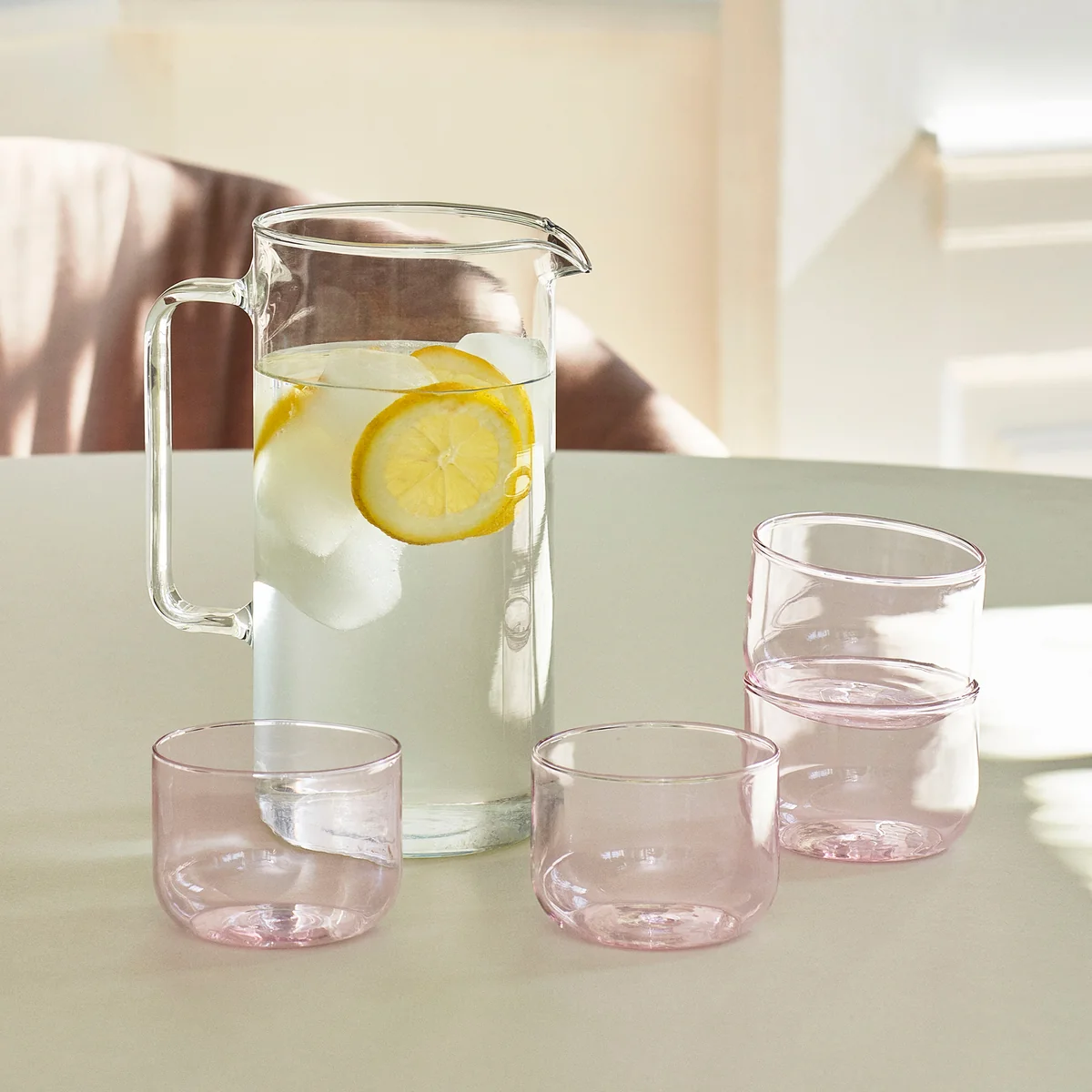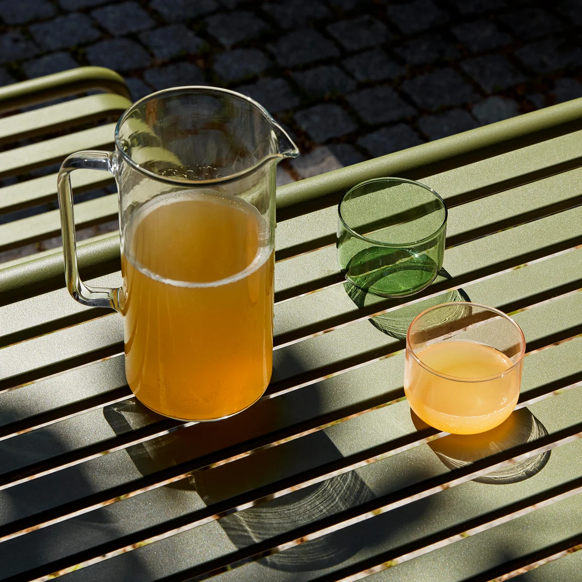 La carafe fait partie de la collection Kitchen Market de HAY et séduit par son aspect visuel et sa fonctionnalité. Fabriquée en verre borosilicate qui est surtout utilisé dans les laboratoires de chimie en raison de sa robustesse, la carafe est très résistante aux températures élevées. En conséquence, elle est idéale pour servir des boissons chaudes et froides. Vous pouvez offrir de manière élégante des jus avec des glaçons et des tranches de fruits ou du thé chaud aux amis et à la famille.