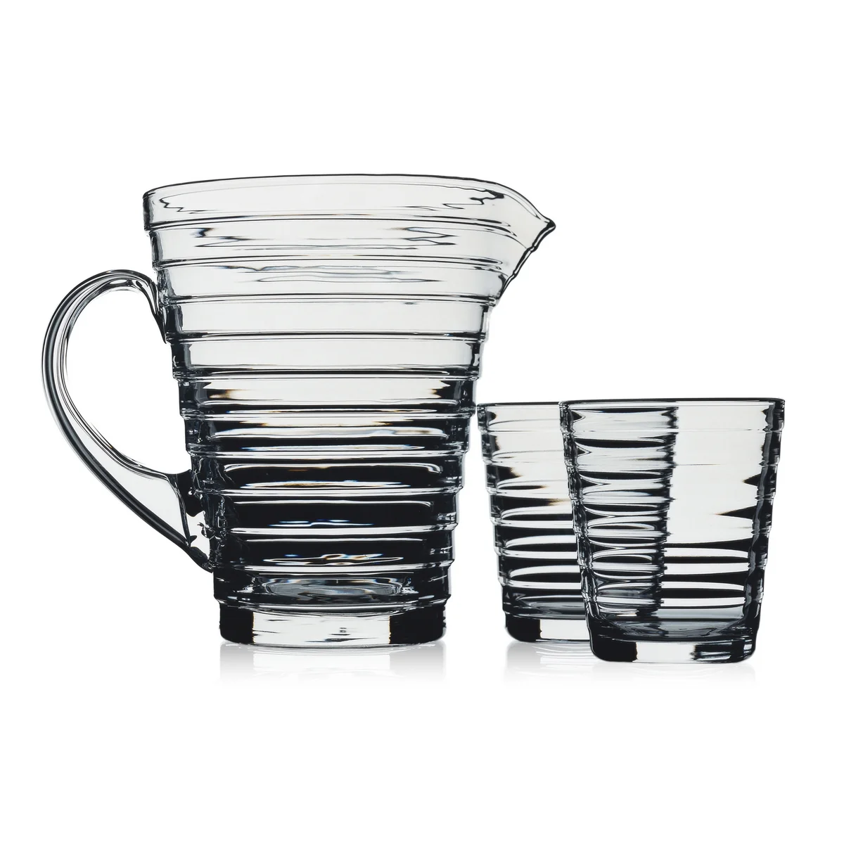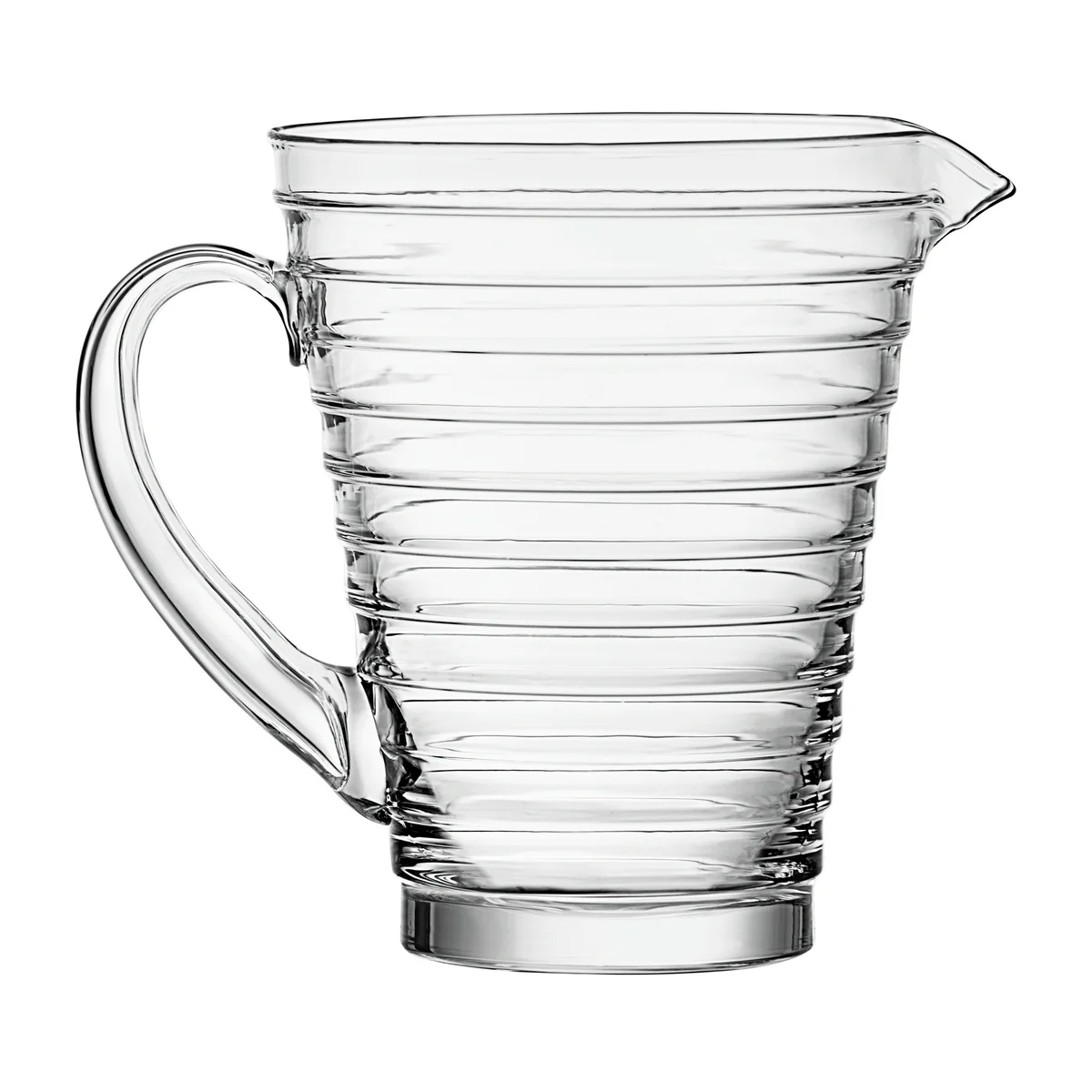 Dans ce cas, il s’agit d’une cruche en verre clair qui peut contenir 120 cl et qui va bien avec les verres Aino Aalto. Veuillez noter aussi les autres produits de la série de verre Aino Aalto dans notre boutique en ligne.