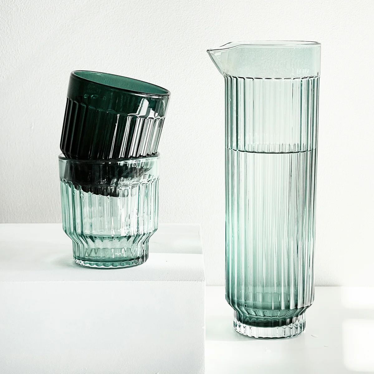 La Lima carafe de XLBoom présente un aspect cannelé en verre coloré. D'une contenance de 0,5 ou 1 litre, cette carafe est un must pour la maison. Elle peut être remplie avec les boissons de votre choix et mise au frais.