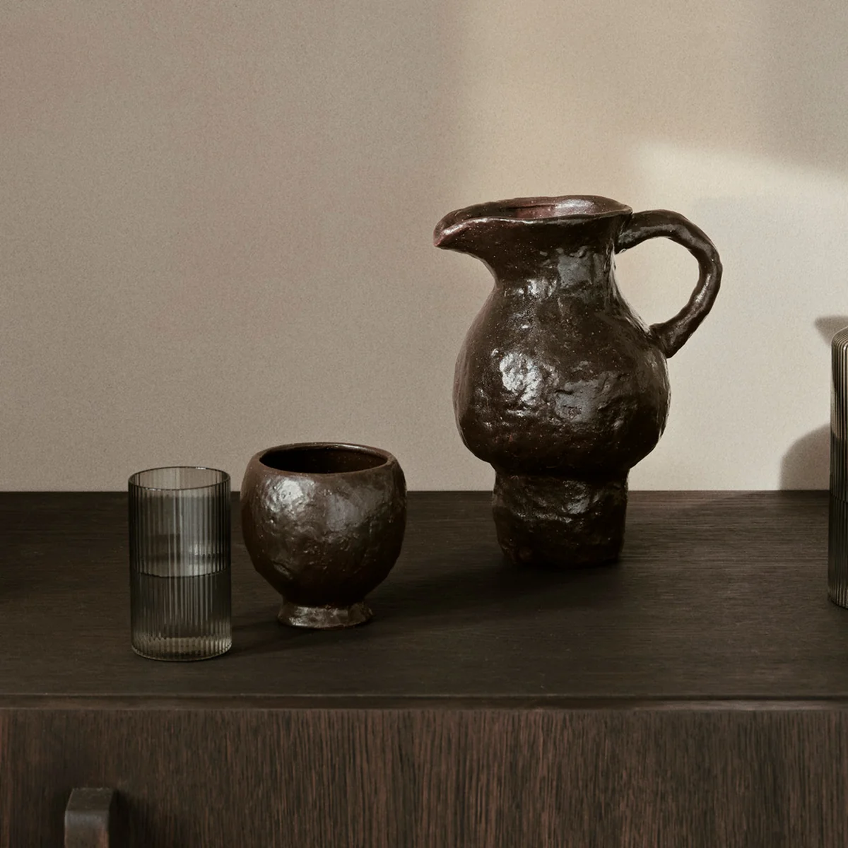 Grâce à son design polyvalent, la chope peut être utilisée Doro pichet est facile à utiliser, que ce soit au quotidien ou lors d'occasions spéciales, et confère à chaque ambiance une sensation de chaleur et de style. Qu'il s'agisse d'un jus fraîchement pressé au petit-déjeuner ou d'un bouquet de fleurs sauvages, Doro confère à la maison une touche de luxe discret.