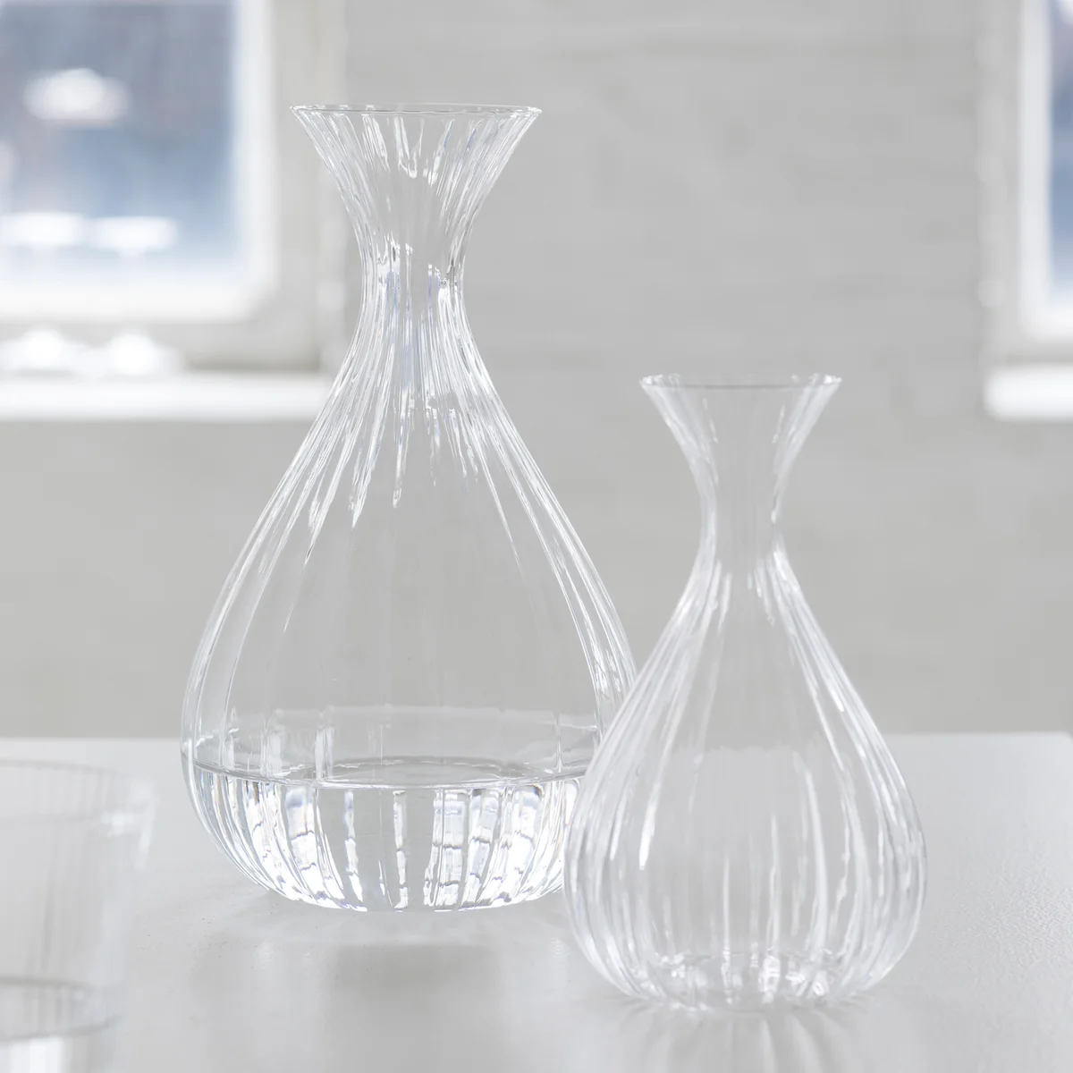La carafe Inku carafe de Serax a une forme ronde qui rappelle celle d'un vase. Avec de belles structures sur le verre, la carafe attire le regard sur chaque table et crée un beau jeu d'ombres lorsque le soleil brille sur la carafe. Elle est idéale pour conserver et servir vos boissons froides préférées en été.