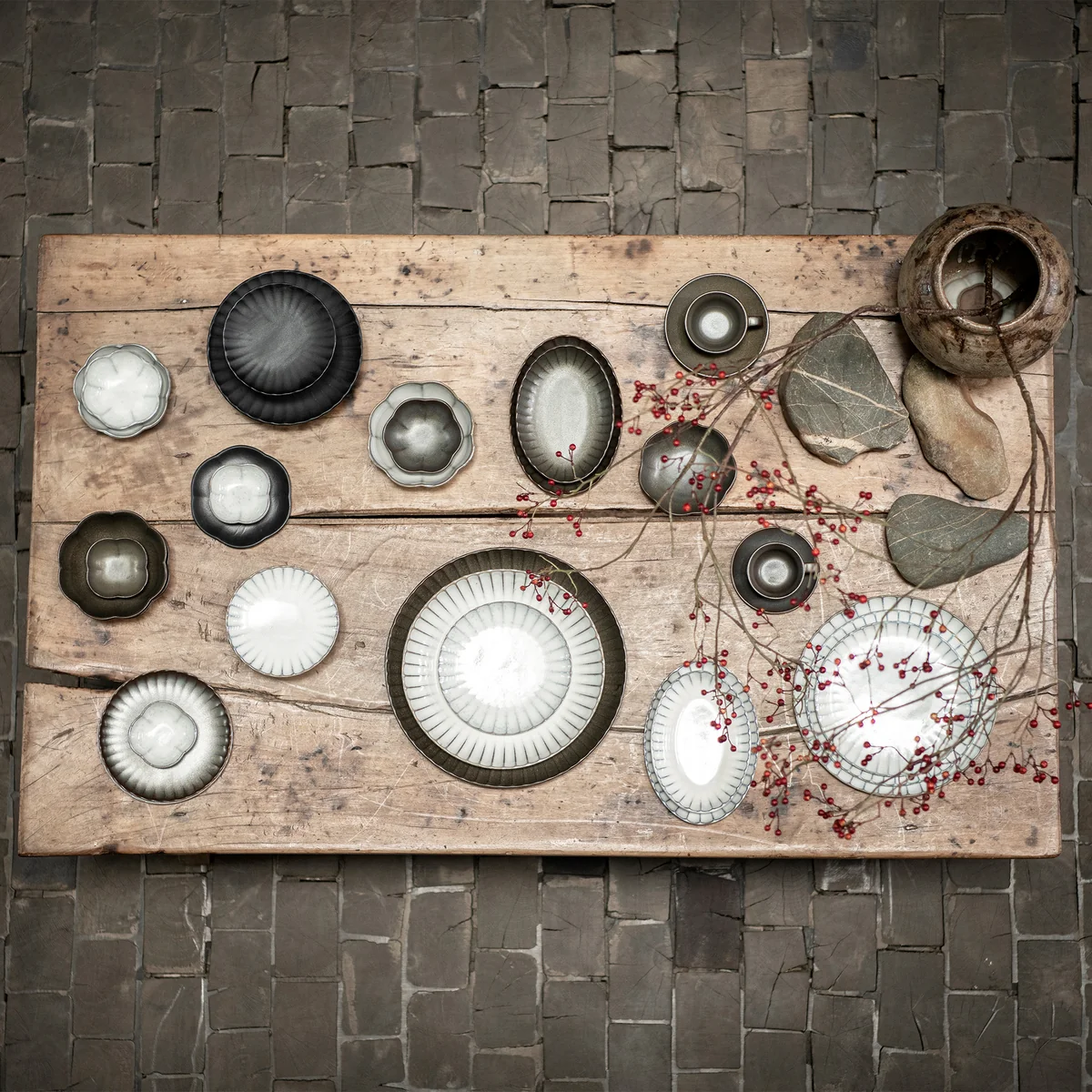 Inku Tableware by Sergio Herman de Serax est une collection qui allie savoir-faire culinaire et artisanat artistique. En collaboration avec le célèbre chef Sergio Herman, Serax crée une gamme de vaisselle qui incarne la passion de Herman pour les saveurs innovantes et une présentation impeccable.