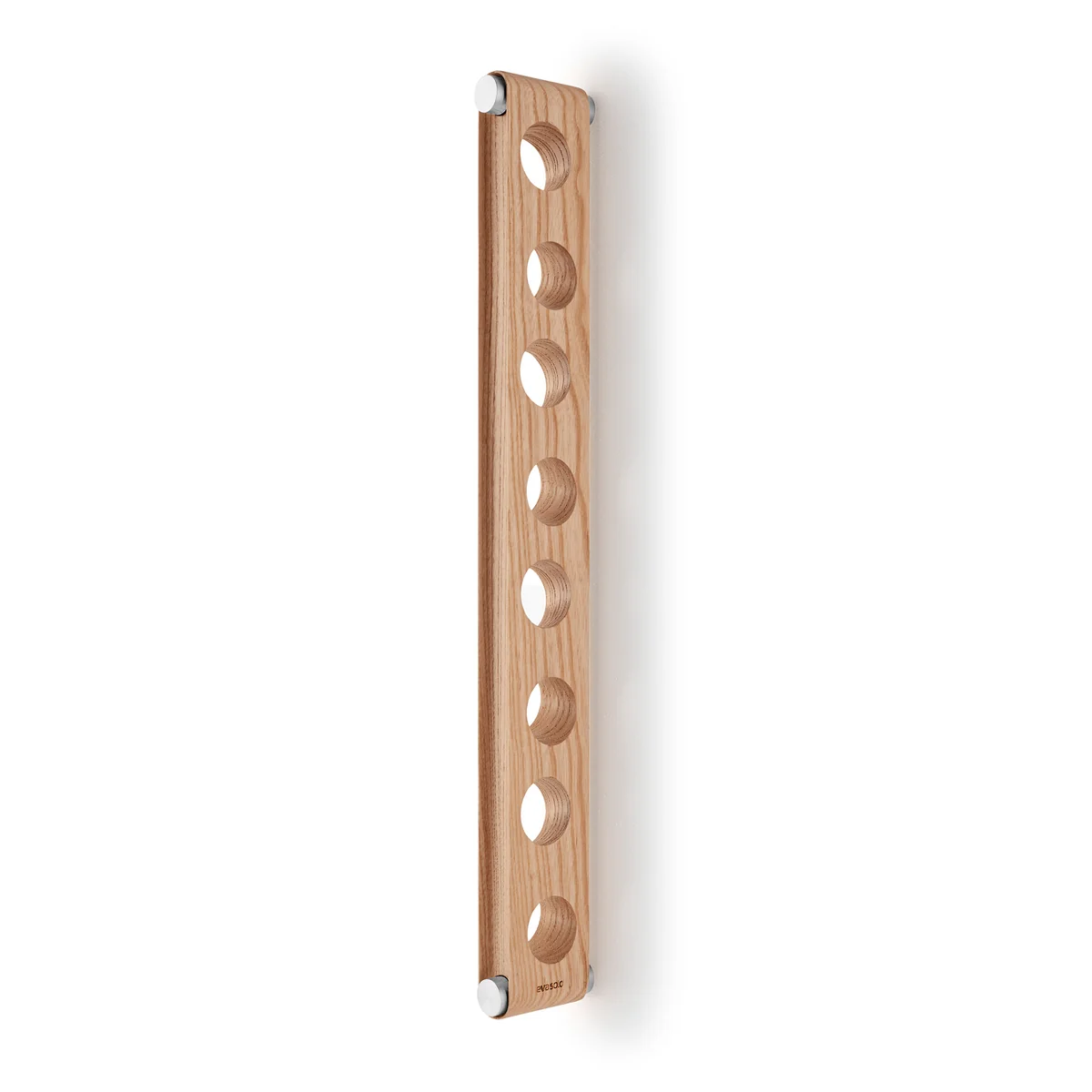 L'étagère est en bois de chêne et en acier inoxydable. Les vis ne sont pas incluses dans la livraison. L'étagère est facile à nettoyer avec un chiffon humide.