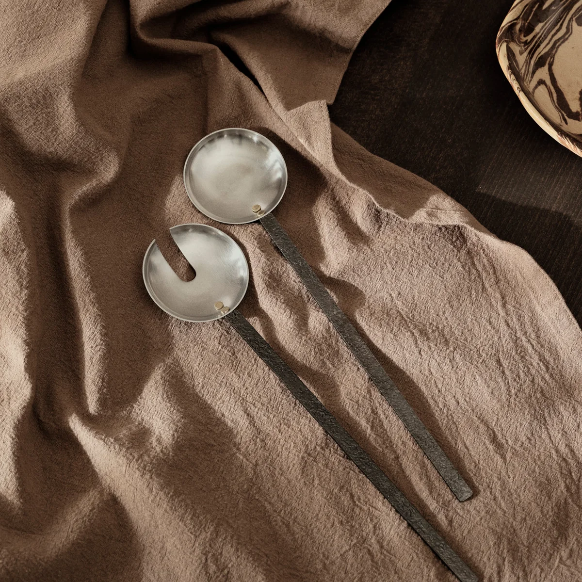 Les couverts à salade Obra de Ferm Living se distinguent par leur design simple et élégant et leur finition de qualité. Fabriqué en acier inoxydable mat et brossé, il est agréable à tenir et complète chaque table dressée. Les lignes claires et l'aspect intemporel font de ces couverts à salade un compagnon polyvalent pour des repas élégants.