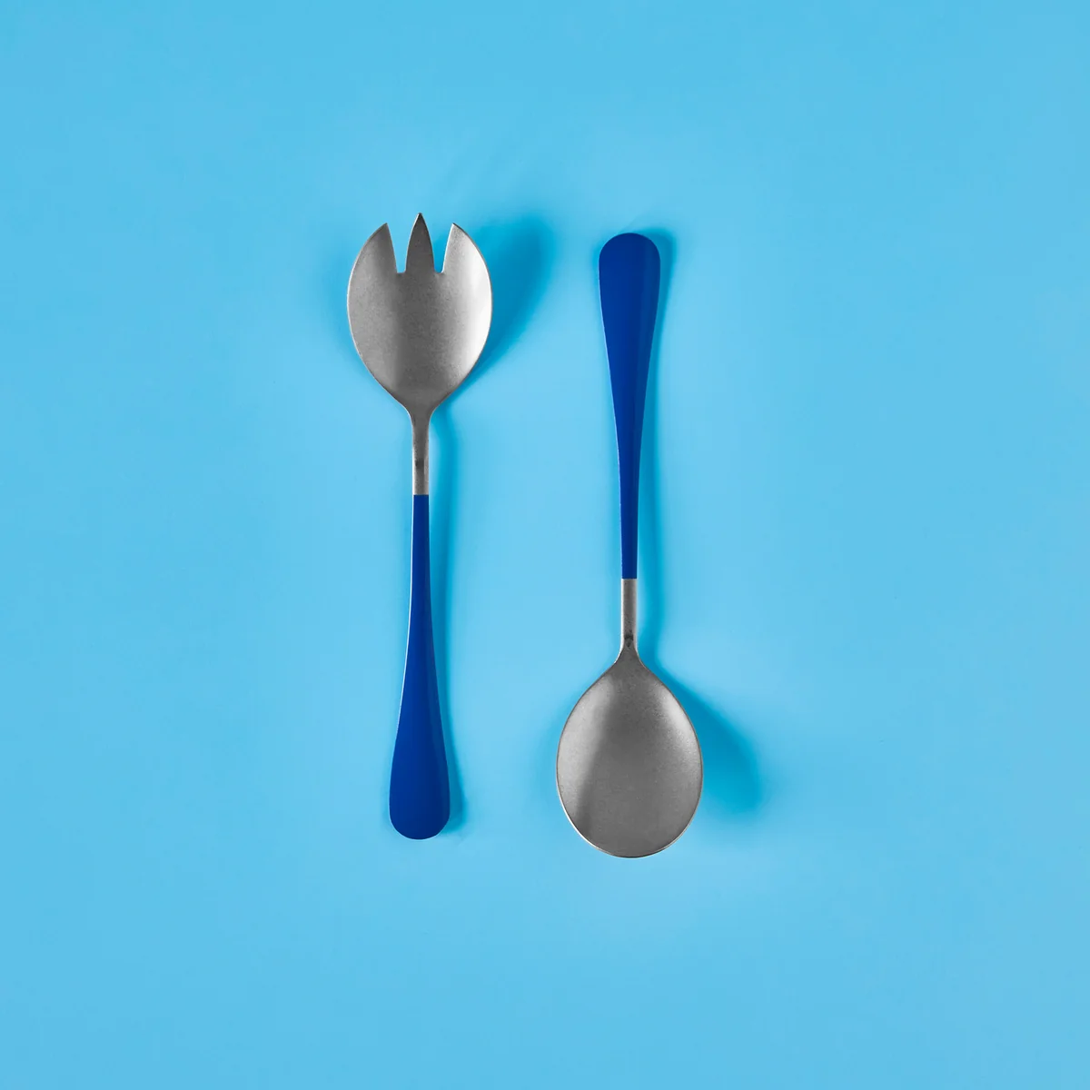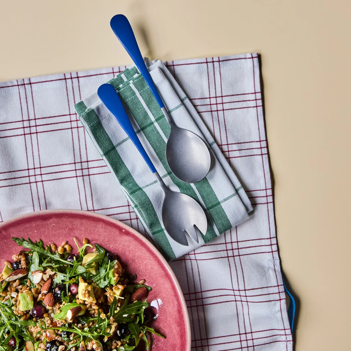 Les couverts à salade Serv de Nicolas Vahé confèrent à chaque table une note particulière. Fabriqué en acier inoxydable de haute qualité à l'aspect antique, il combine une élégance rustique avec une touche de couleur moderne grâce aux poignées bleues. Que ce soit pour un brunch décontracté, pour servir des salades d'été croquantes ou comme détail décoratif sur votre table de fête - ce set de deux pièces fait de chaque repas un moment de plaisir plein de style. Pour un entretien optimal, il est recommandé de les laver à la main afin de préserver l'intensité des couleurs.