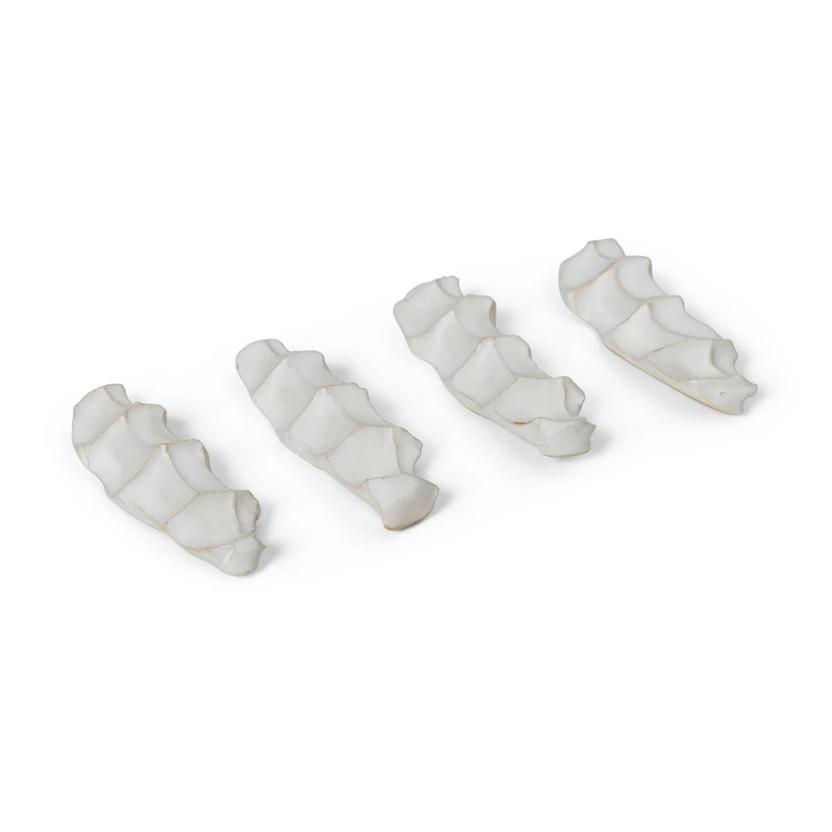 Avec les Serre -repose-couverts, vous donnez à chaque table dressée une note particulière. Les range-couverts sont fabriqués en argile, pressée à la main par un artisan. Chaque pièce présente des cavités uniques pour les doigts, qui font directement référence au nom " Serre ", qui signifie "presser" en français. Les quatre supports de couverts sont recouverts d'un émail réactif qui souligne leur expression artisanale. Ils sont emballés dans une jolie boîte en bois réutilisable à quatre compartiments, idéale pour offrir, mais aussi pour ranger les pièces lorsqu'elles ne sont pas utilisées.