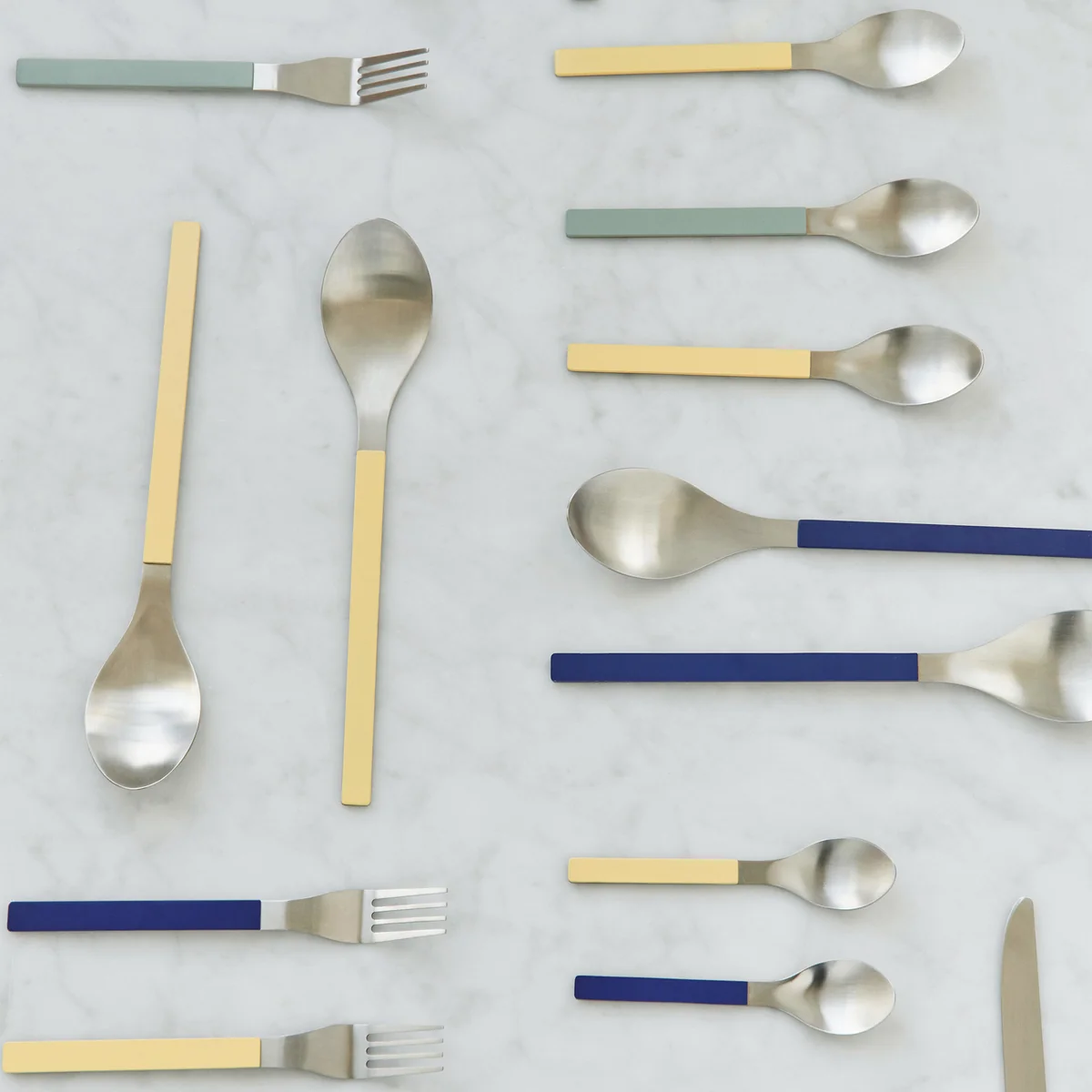 HAY - MVS Cuillère à servir, bleu foncé / jaune (set de 2)
