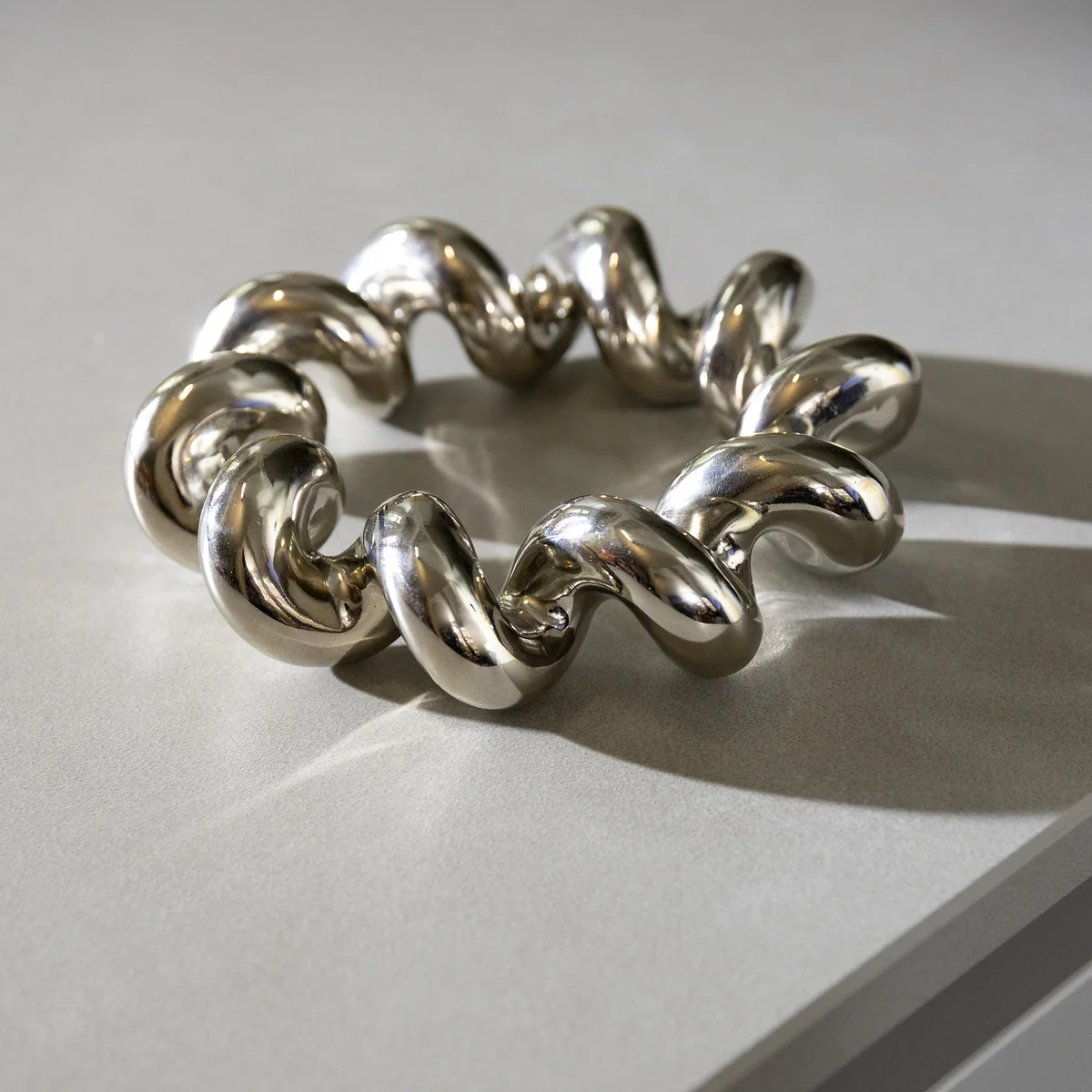 Le dessous de plat Twist allie une protection thermique pratique à un langage des formes moderne. Le design géométrique tordu confère au dessous de plat une présence sculpturale, tandis que la finition chromée et résistante à la chaleur protège les surfaces de manière fiable. Moulé en métal, il est stable et durable - un accessoire élégant pour la cuisine et la table à manger.