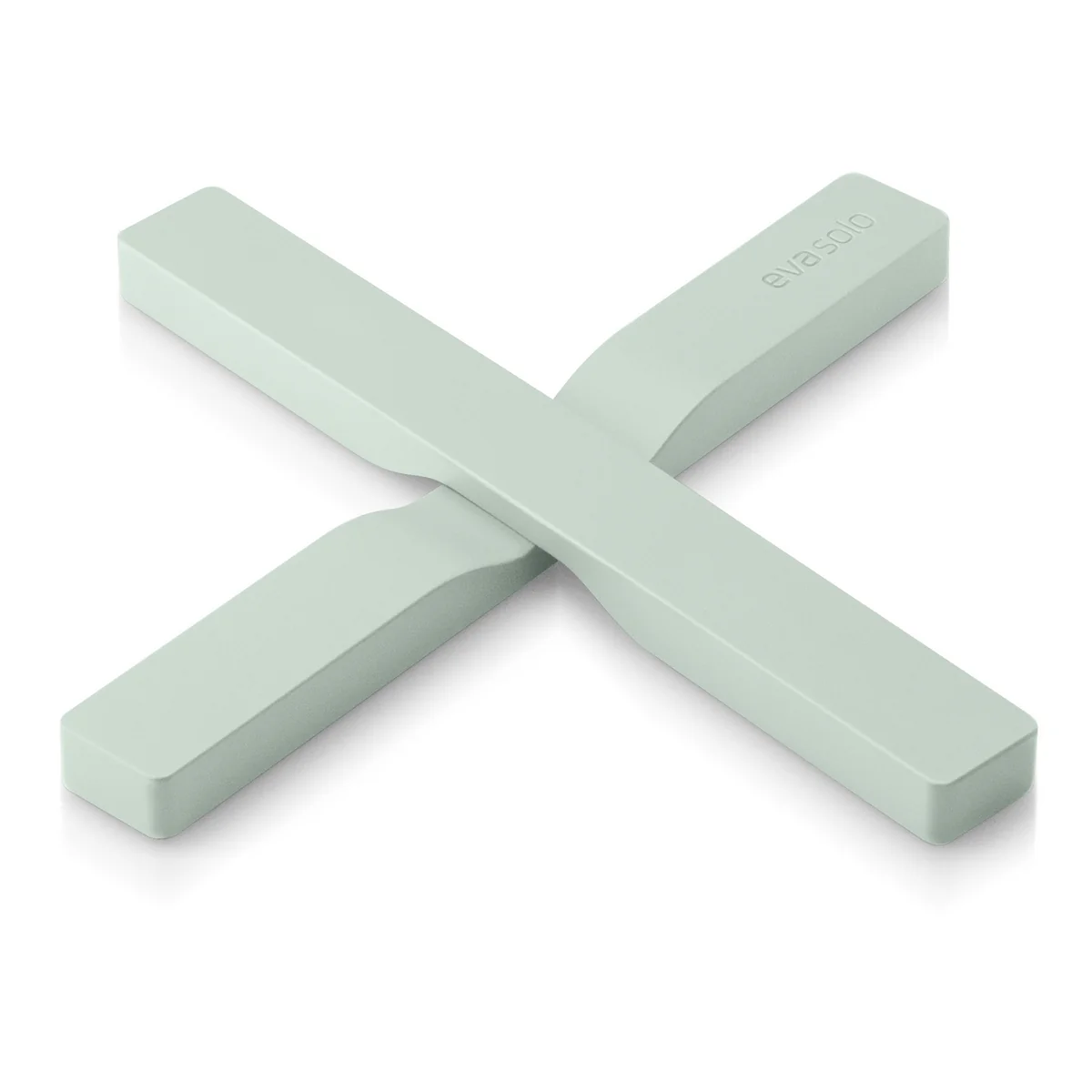 Le Gravity Le dessous de plat est composé de deux parties qui sont maintenues ensemble par un aimant. Si l'on sépare les deux parties, on peut utiliser le sous-plat de deux manières différentes. Gravity -On peut utiliser le dessous de plat : Si l'on forme un "X" avec les deux parties, on peut poser des casseroles, des poêles et d'autres petits objets sur le produit résistant à la chaleur. Si l'on utilise les deux moitiés de Eva Solo Gravity Si l'on utilise les deux parties séparément, il est également possible d'y poser des ustensiles de cuisine plus grands, comme des plats à four.