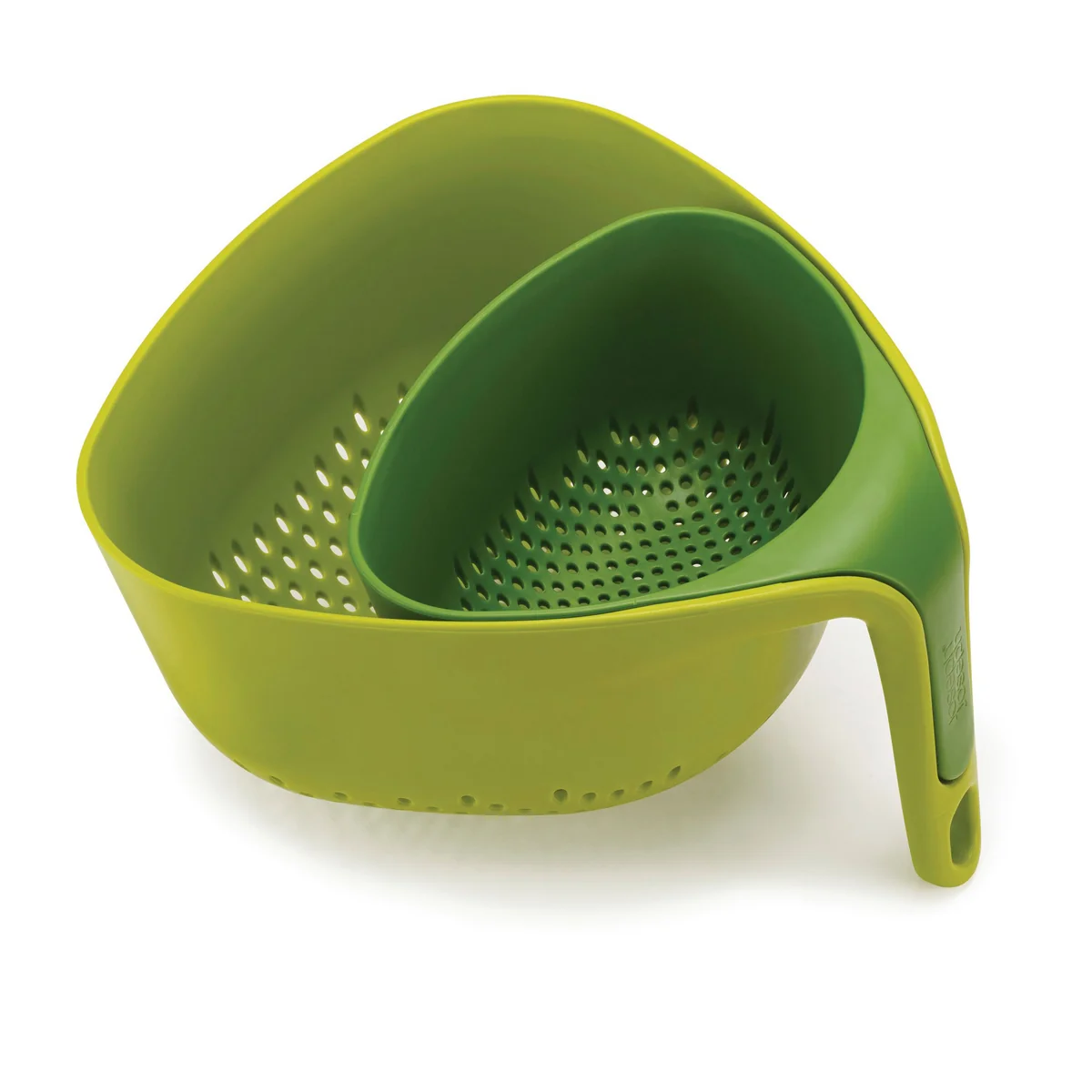 La passoire angulaire Nest de Joseph Joseph a plusieurs fonctions exceptionnelles en même temps. Premièrement, la poignée verticale garantit une position stable et sûre dans l’évier. Ainsi, vous avez une main libre afin d'utiliser le robinet. Deuxièmement, vous pouvez vider la forme triangulaire plus facilement et plus précisément. Troisièmement, les liquides s’écoulent rapidement et efficacement par les trous verticaux.