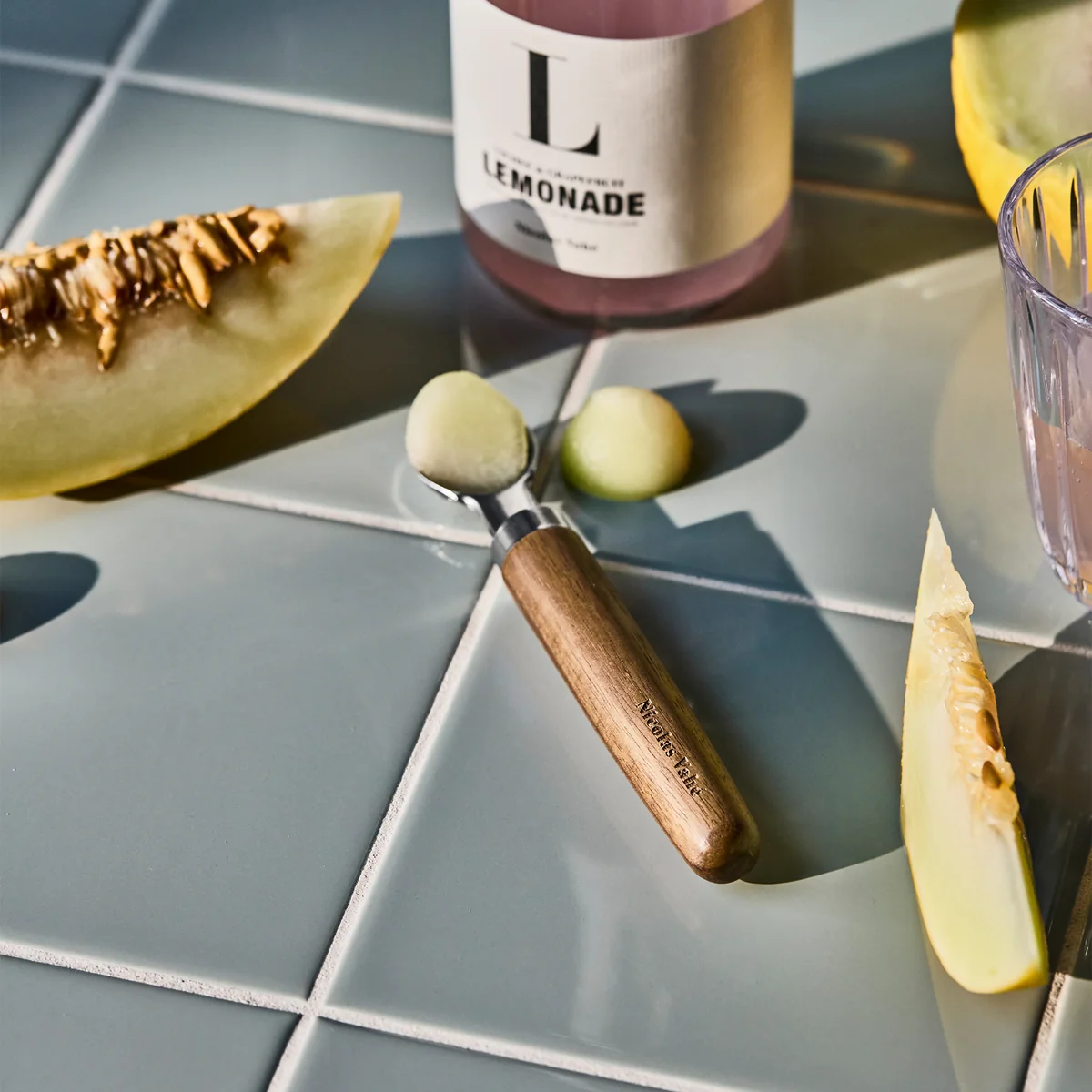 Le Melon Fruitcutter de Nicolas Vahé est un ustensile de cuisine pratique et élégant, spécialement conçu pour la préparation des fruits et légumes. Avec son manche en bois d'acacia noble et sa lame robuste en acier inoxydable, il allie fonctionnalité et design attrayant.