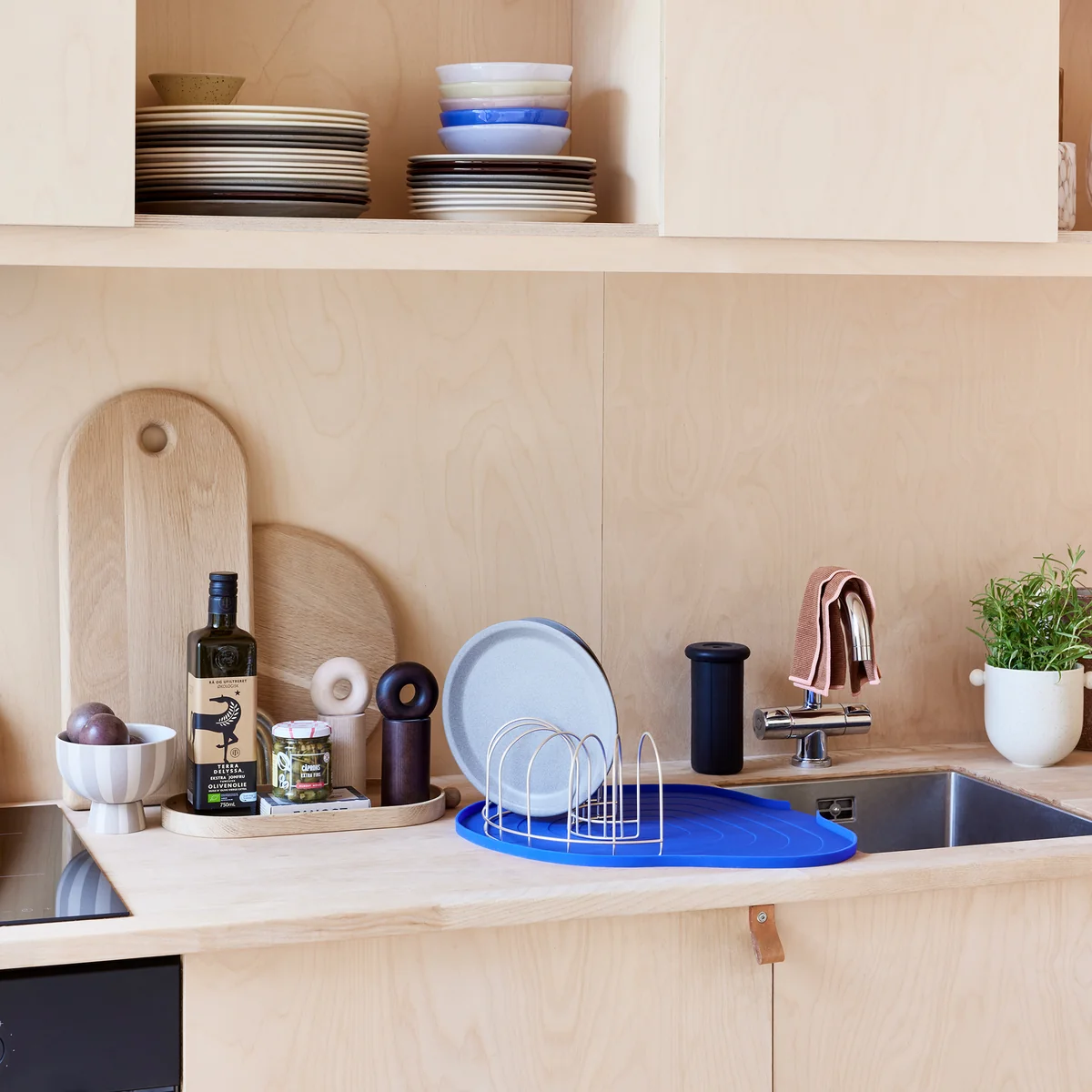 Fabriqué en silicone de haute qualité, ce tapis d'égouttage de forme organique est à la fois durable et fonctionnel. Sa texture souple et flexible est parfaite pour maintenir la vaisselle en place et protéger le plan de travail de l'excès d'eau et des rayures.