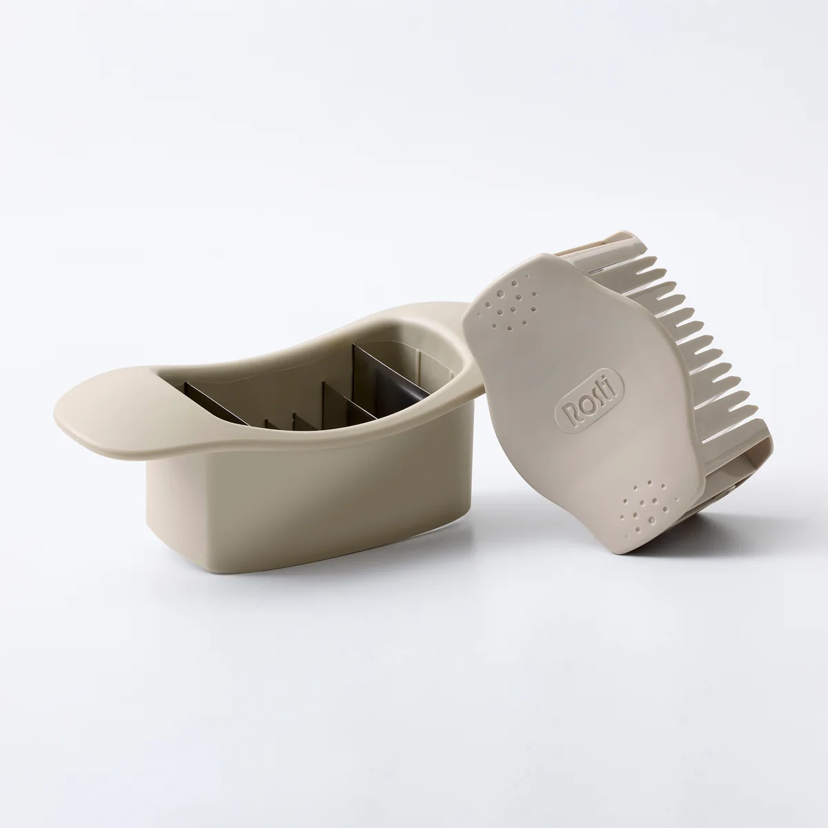 Le Rosti - est un appareil de cuisine qui Hasselback Classic est l'ustensile de cuisine idéal pour préparer sans effort la célèbre spécialité suédoise. Il permet d'entailler les pommes de terre avec précision, sans les couper complètement. On obtient ainsi l'aspect caractéristique de l'éventail, qui garantit des bords croustillants et une cuisson uniforme lors de la cuisson au four. Que ce soit en accompagnement d'un repas de fête ou comme snack croustillant, ce coupeur apporte le raffinement culinaire directement dans l'assiette.