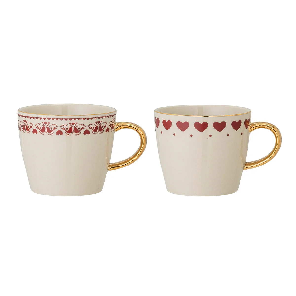 Les tasses à anse Jolly de Bloomingville sont un complément festif et joyeux pour la cuisine. Les 2 tasses sont fabriquées en faïence et présentent un motif rouge et blanc sur l'une et différents motifs de Noël sur l'autre.